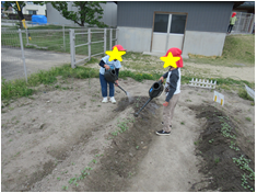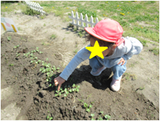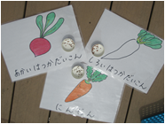 ・「どの野菜が食べたい?」から始まった野菜作り。食べるにはどうしたらいいかをみんなで考え、種を蒔くことにしました。野菜を育てる中で、種の大きさや芽の色、葉っぱの形など、様々な発見や気付きを友だちと共感する面白さや楽しさを感じられたら良いなと思い活動してきました。収穫してから、泥のついた野菜を洗ってかじって、触感や食感、五感を刺激するような経験が野菜作りを通して出来たかなと思います。