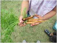 ・やっと収穫!心待ちにしていた自分たちで育てた野菜の味は、想像と違っていたかもしれません。「美味しい!」「からーい」「もう食べられない・・・」「おかわりちょうだい!」でも、自分たちで育て収穫した野菜の味はきっと子ども達にとってひとつの経験になったと思います。