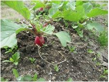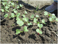「赤い二十日大根の芽は下が赤くなってるんだね」
