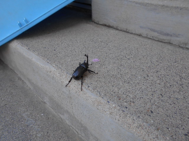 ある日のこと・・・保育士が外に出るとかぶとむしが!