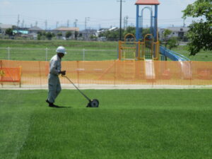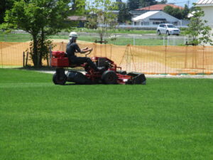 芝生を管理する人が、芝を刈ったり、スプリンクラーで水をあげたりして整備をしてくれました。