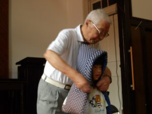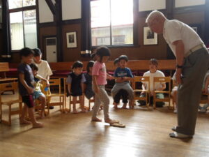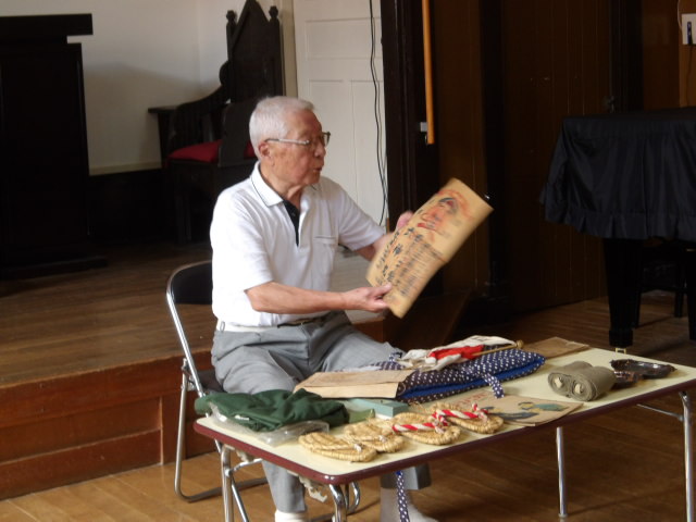 幼稚園の卒園生である三度屋さんが来て下さり、戦争の時のお話を聞きました。