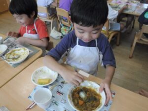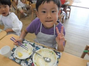自分たちで手を加えた食事はいつもよりおいしく感じたようです。