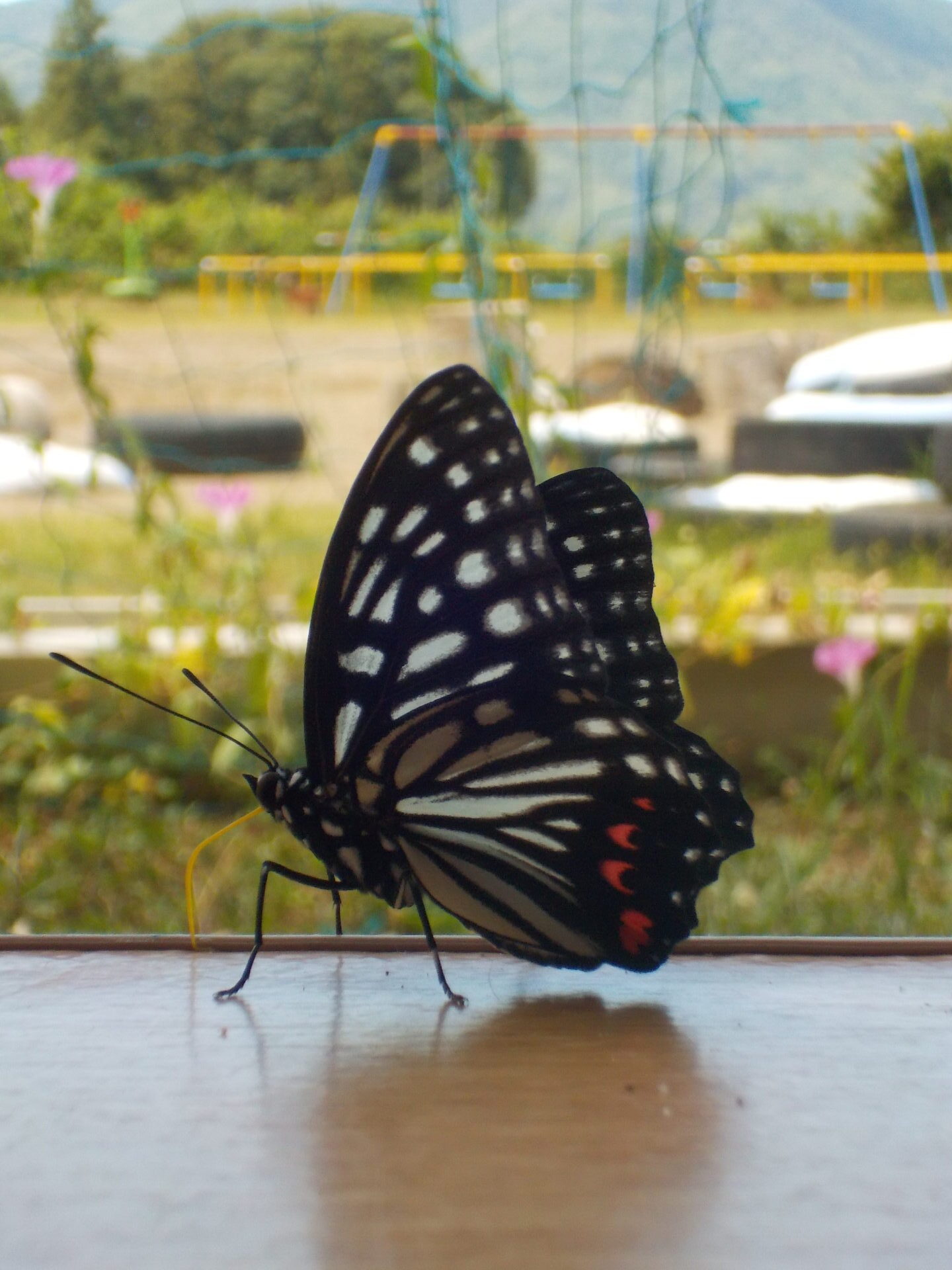 なんていうちょうちょ?このちょうちょも一休み。暑いもんね。