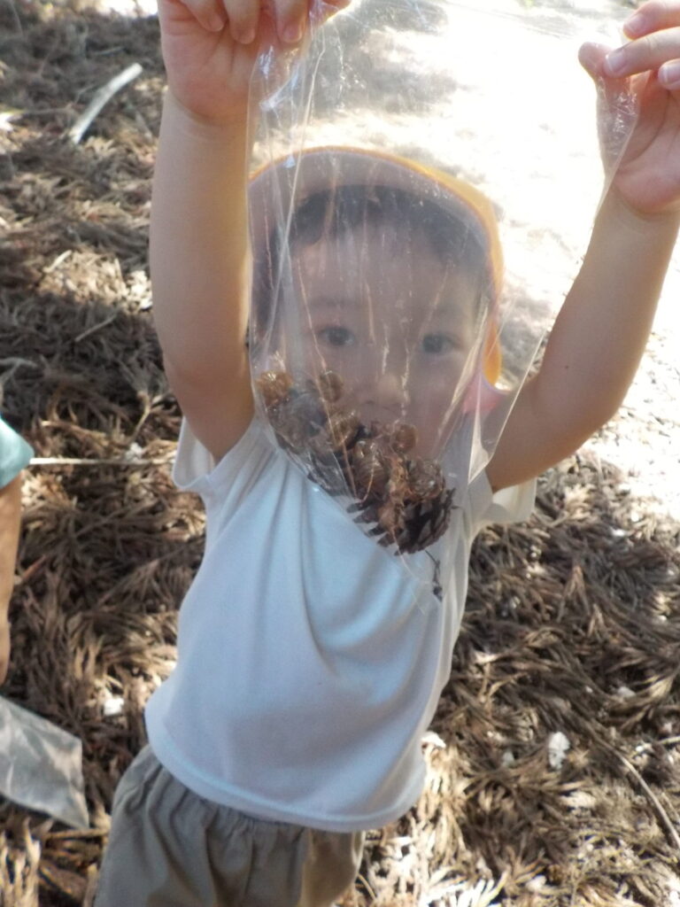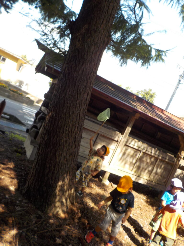 8月の終わりにセミの抜け殻探しに近くの神社へ年中児と行ってきました。
