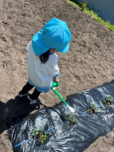 ある年長さんは苗を持つと「トマトの匂いがする!」と新しい発見をしていました。