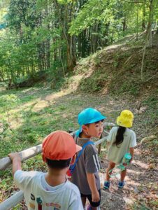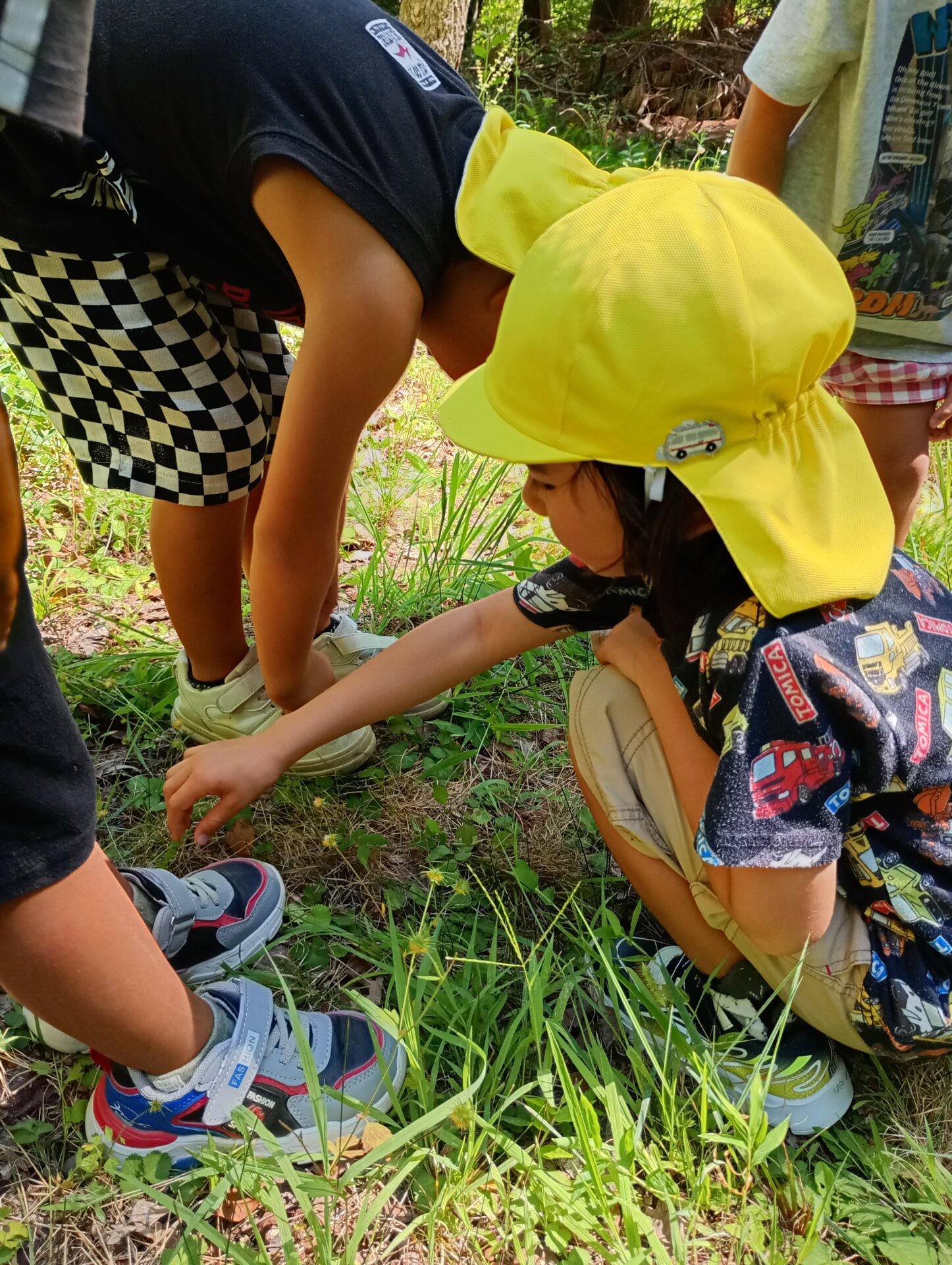園庭はまだまだ残暑が厳しいですが、裏山には涼しい木陰と風が吹き、時間を忘れて遊ぶ子どもたちでした。植物や生き物も春とは変化してきて、季節の移り変わりを実感できました。