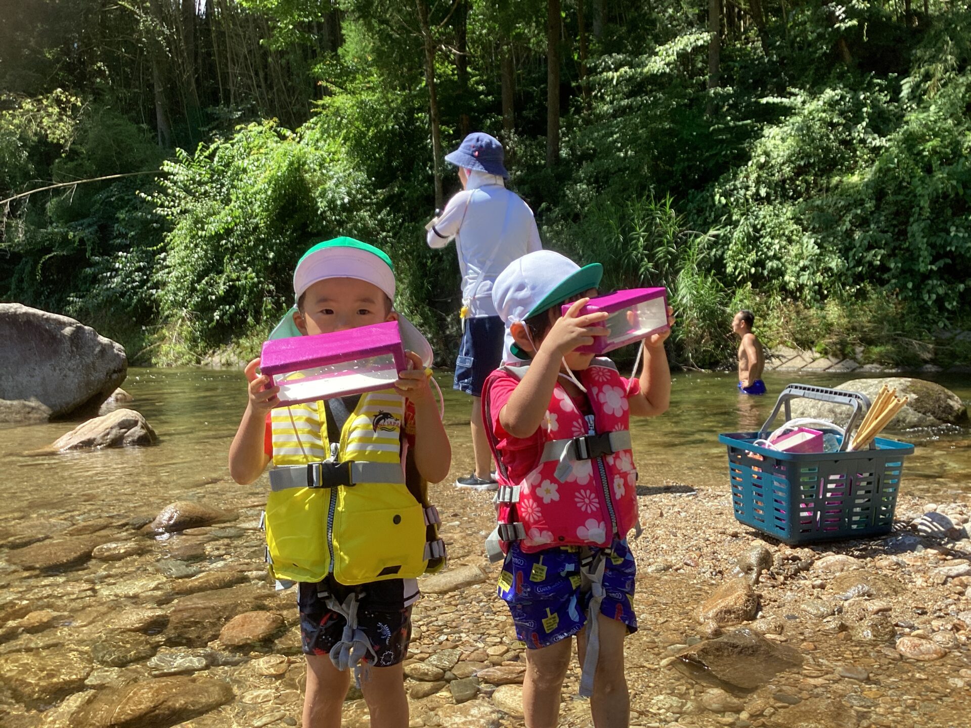 流れて遊んだあとは、箱メガネで川の中を覗いたり、向こう側の景色を見てみたり♬