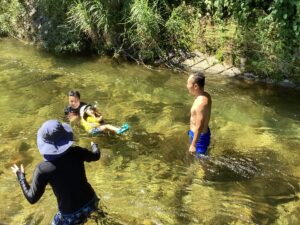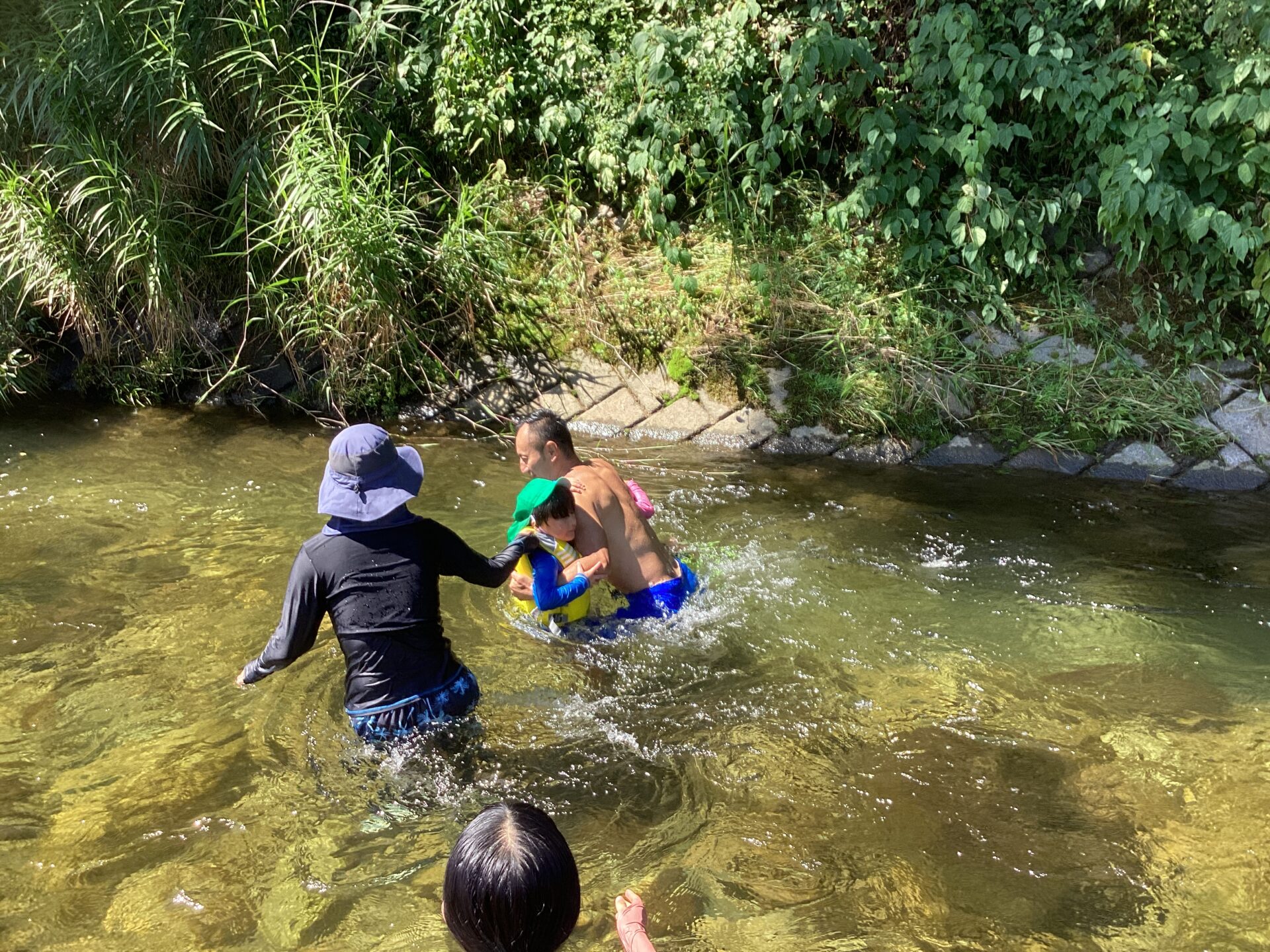 流れてみて楽しかった子は繰り返し、川を流れるのを楽しみ、ちょっと苦手な子は浅い所で涼みながら遊んでいました。