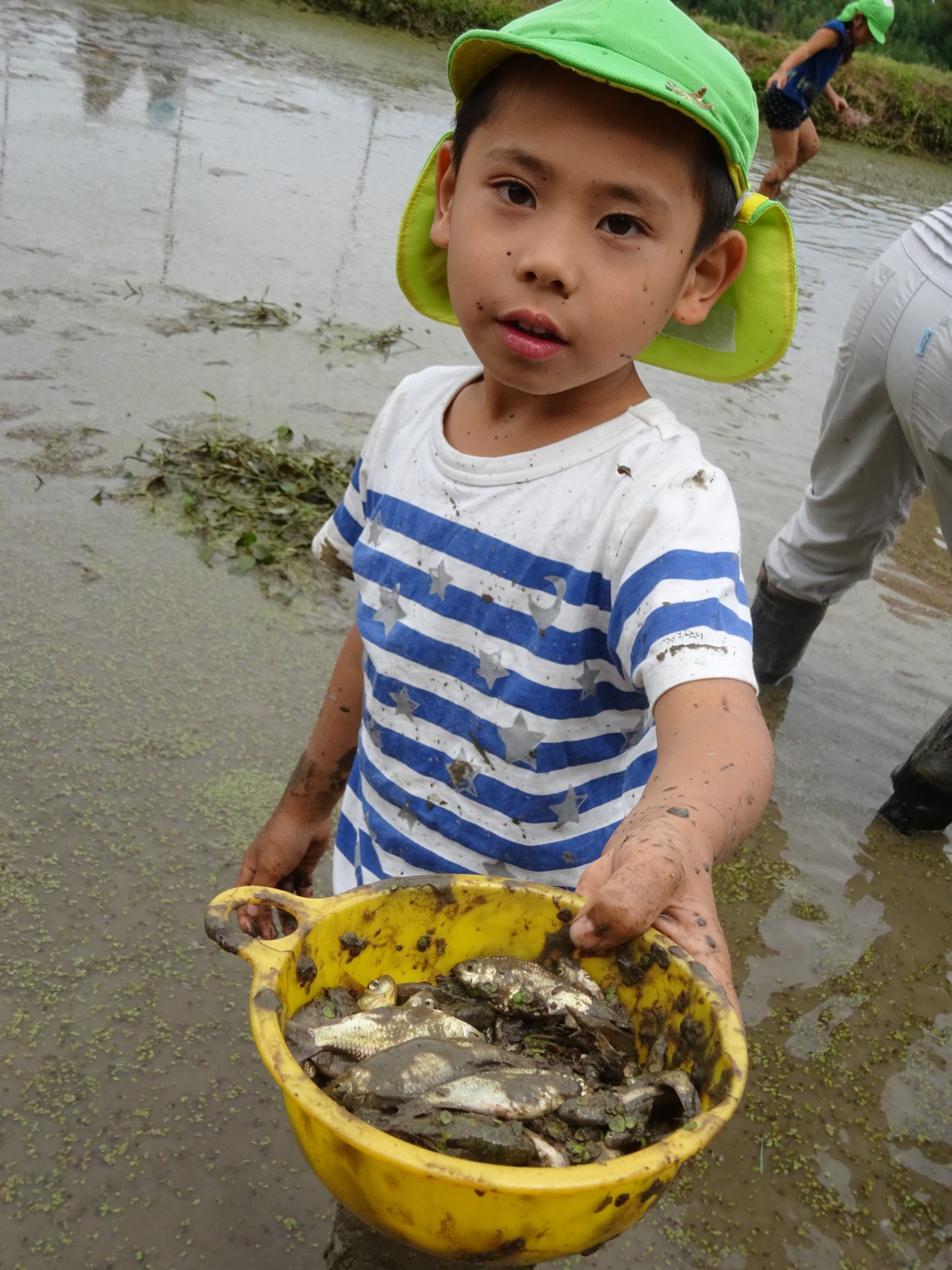 ・なかなか体験することのできないふな捕り。「ヌルヌルしている」「すべってうまくつかめない」など体験しなければ分からない事が知れるいい機会です。こんな体験をさせて下さる地域の方に感謝です。