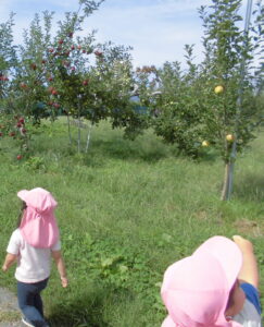 草花や虫が大好きでりんごや田んぼの稲穂が色づいてきたことにもすぐに気づいた子どもたちです。