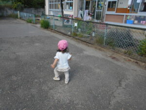 ・春にはまだハイハイやつかまり立ちだった0歳児は、この秋から靴を履いて歩くようになりました。まだ靴に慣れず、階段やちょっとした地面のでこぼこに足を取られ転んでしまうこともありますが、近くで見守っています。体の使い方を知って転ぶことが少なくなっていくことを今は願っています。