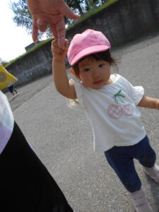 ちょっと不安なところは保育士の手を借りて歩きます。