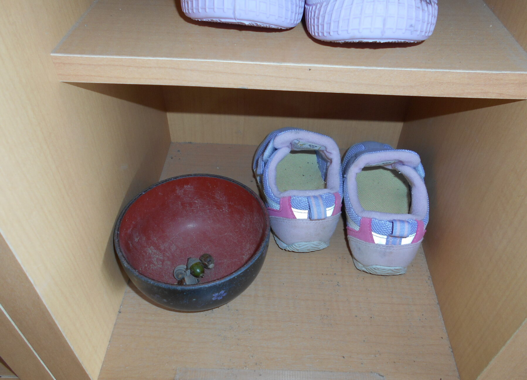 入室するときには下駄箱にそっとコレクションする1歳児でした。