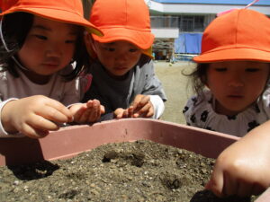 自分達のグループが早く当番にならないかと、毎日楽しみにしていたり、水やりをしながら「はやくでてこーい!」と呼びかけてみたりしていました。