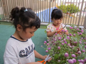 千日紅とミントは自分達で取りました。ミントを摘みながら「チョコミントもでてくるといいのになぁ~」とかわいらしい呟きが聞こえてきました。