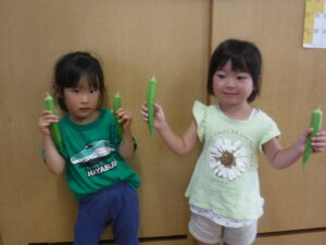 「もっとお野菜育てたい!」「他のお野菜は切ったらどんな形なのかな?」という声も聞かれ、畑活動に関心をもってくれているようです。そんな子どもたちの気持ちを大切に、これからの季節も畑活動を楽しんでいきたいと思います。