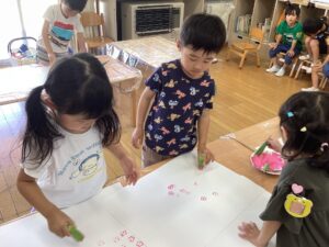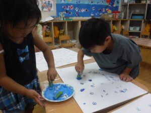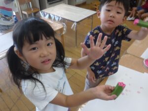 スタンプ遊び中。 「星の形‼」 「お花に見えるよ。」