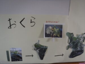 子どもたちにとってあまり馴染みのないオクラ。どんなふうに生長するのかな?どんな味がするのかな?子どもたちがワクワクしながら育てられることを願ってオクラを植えました。