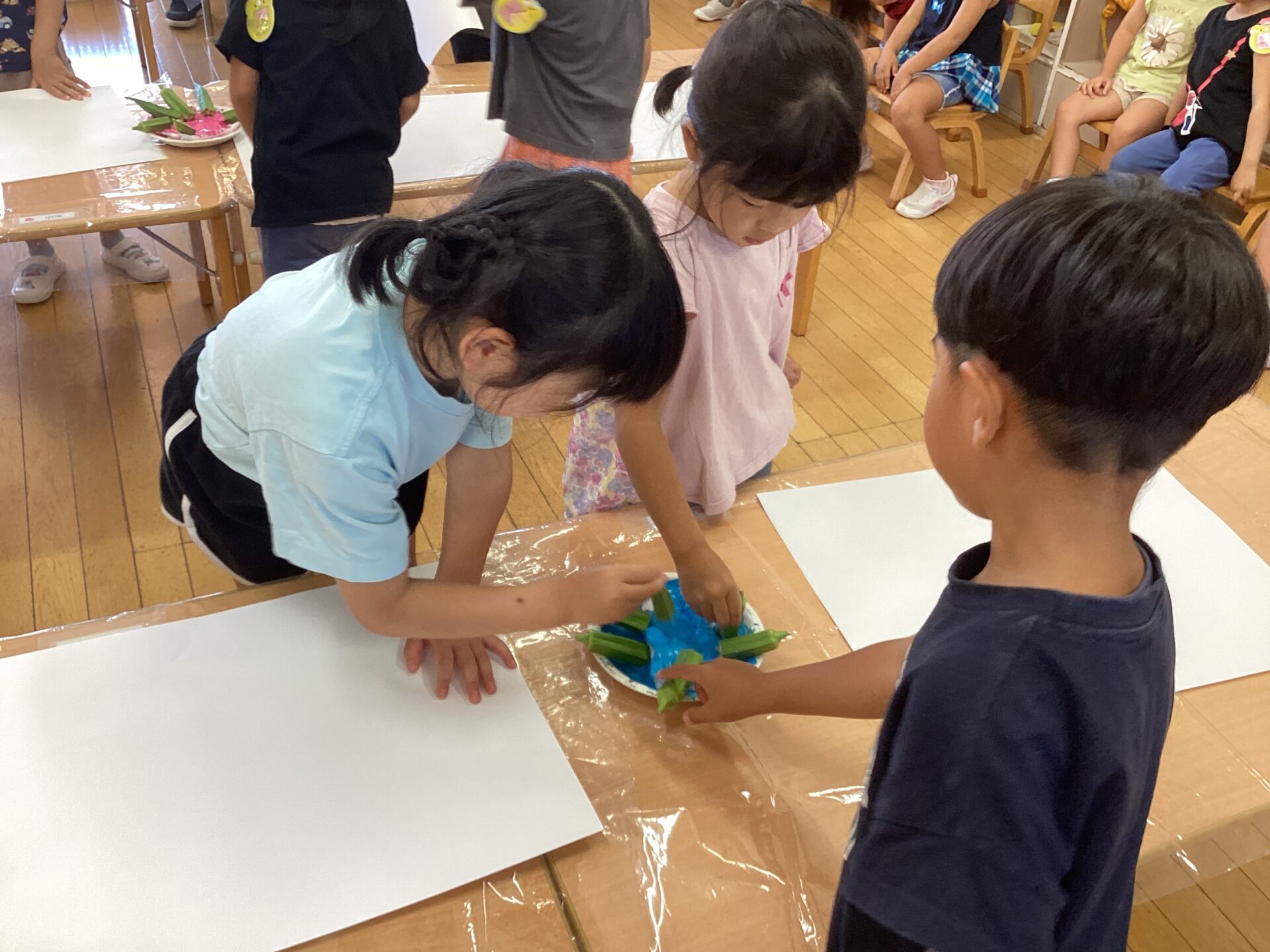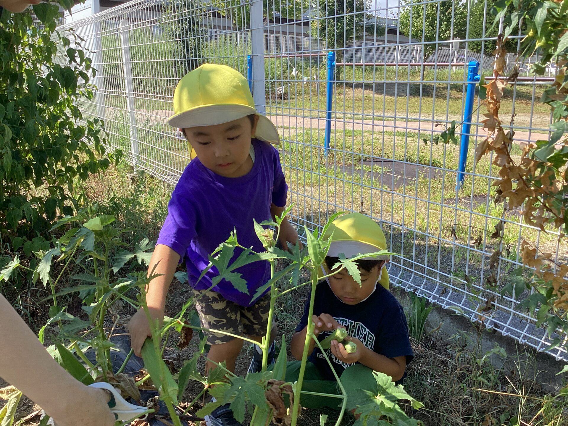 春から夏の終わりまで、長い期間オクラという野菜に親しんできました。味覚を楽しむことはもちろん、食べられなくなってしまったオクラも無駄にせず、子どもたちと話し合いながら遊びに活用することが出来ました。