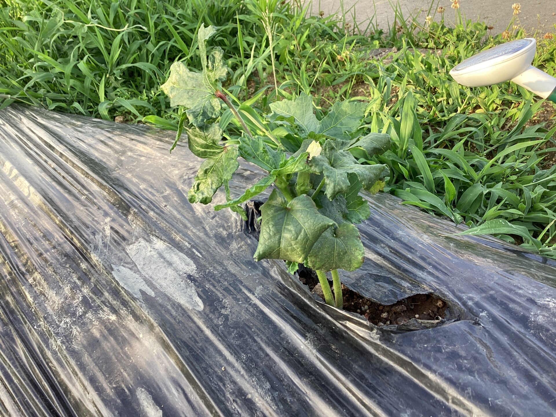5月に植えたばかりのオクラの苗は小さかったけれど…。