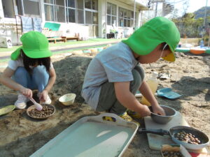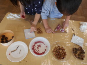 拾ったどんぐりは園庭やお部屋で遊びの中へ。