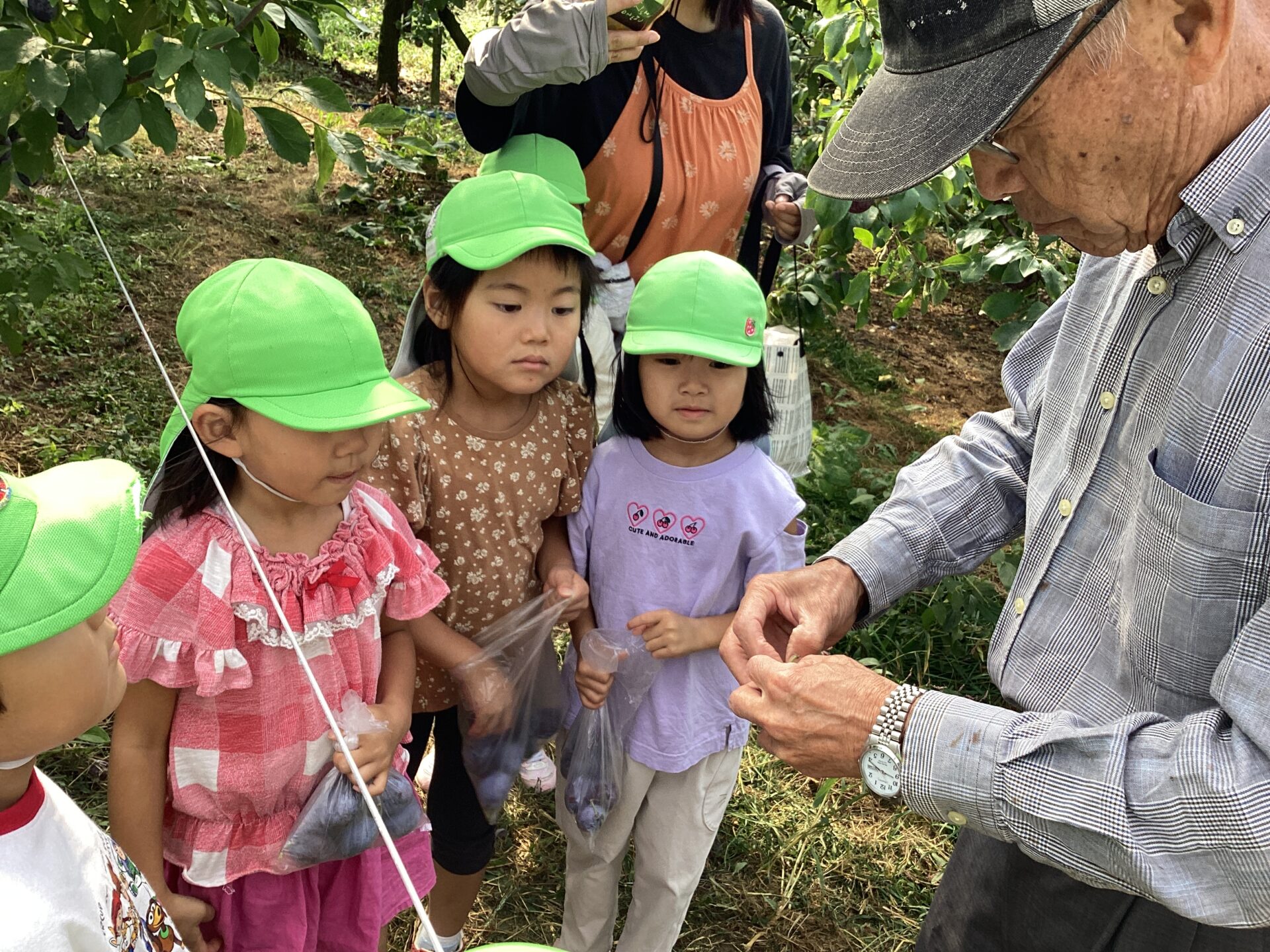 プルーンの上手なとり方のコツを教えてもらい、収穫です。