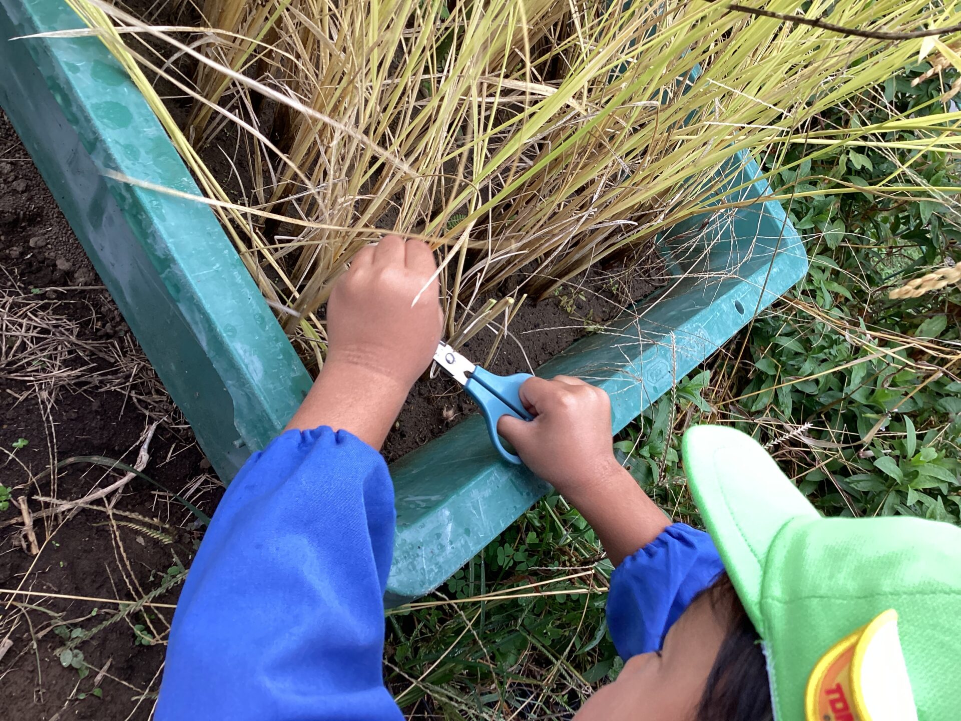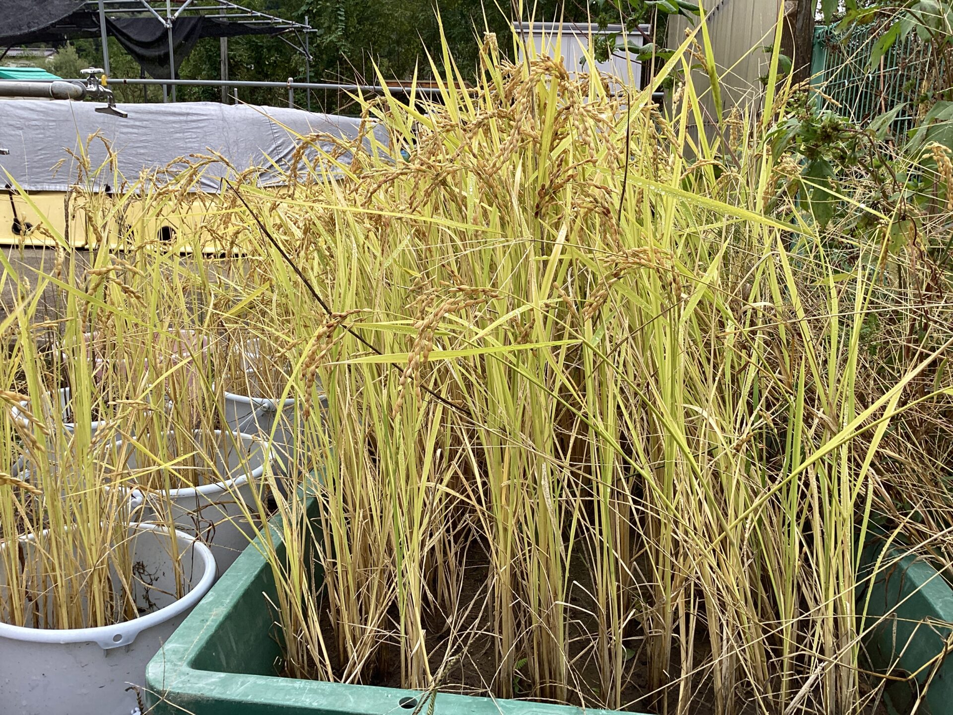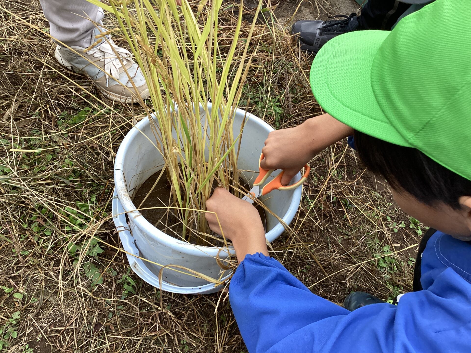 大きな田んぼではなく、バケツで育てた稲が実り、いよいよ稲刈りの時期を迎えました。