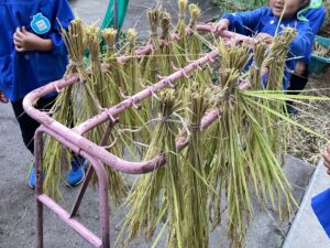 お米を干すことの名前やその理由も教えてもらい、食べるまでに時間を要することを学びました。