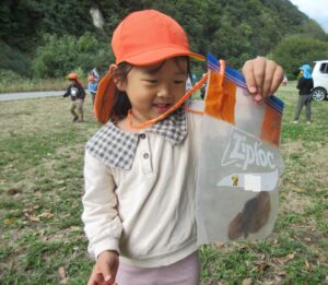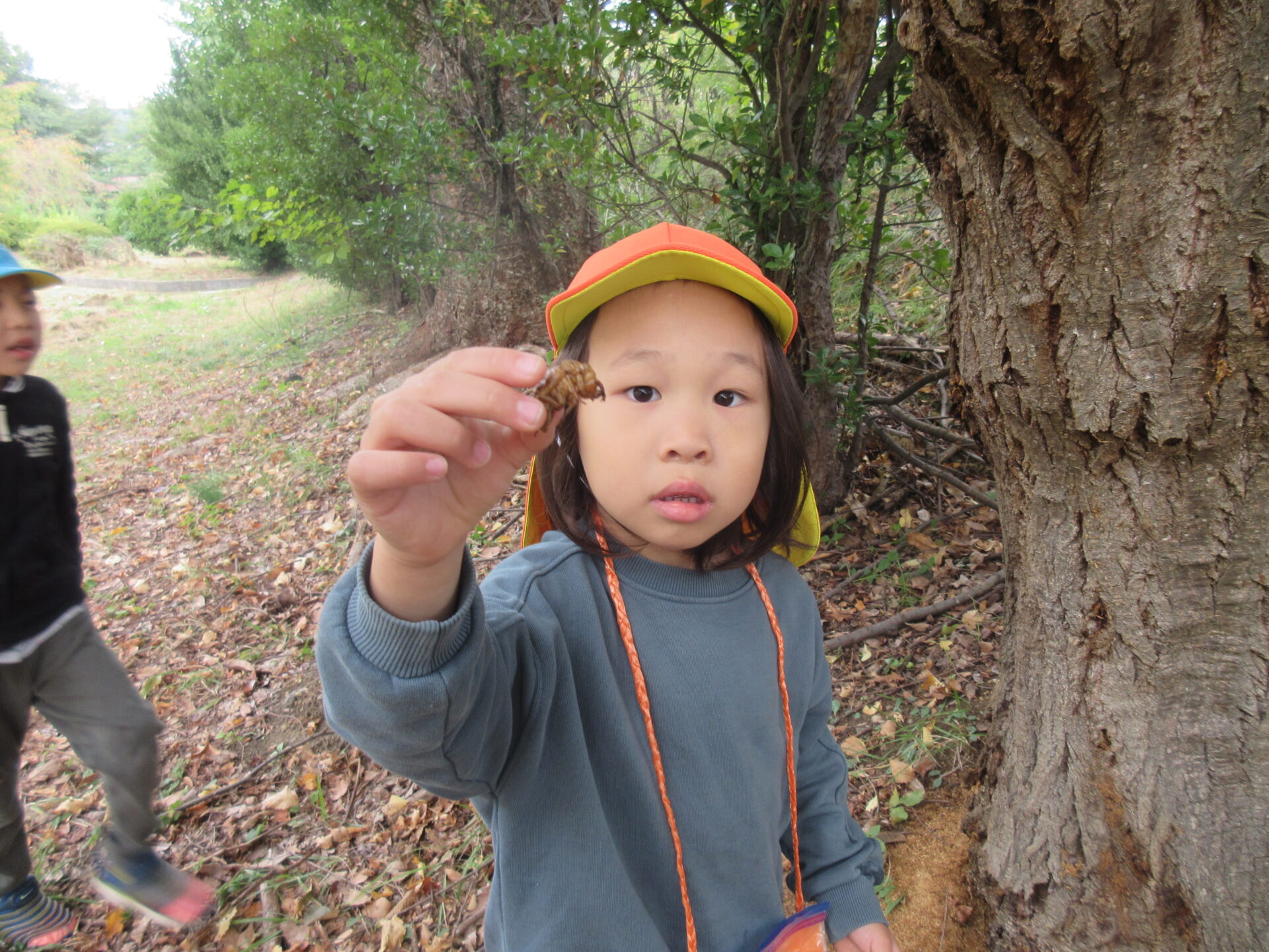 落ち葉以外にもまた違った宝物を発見する子もいました。