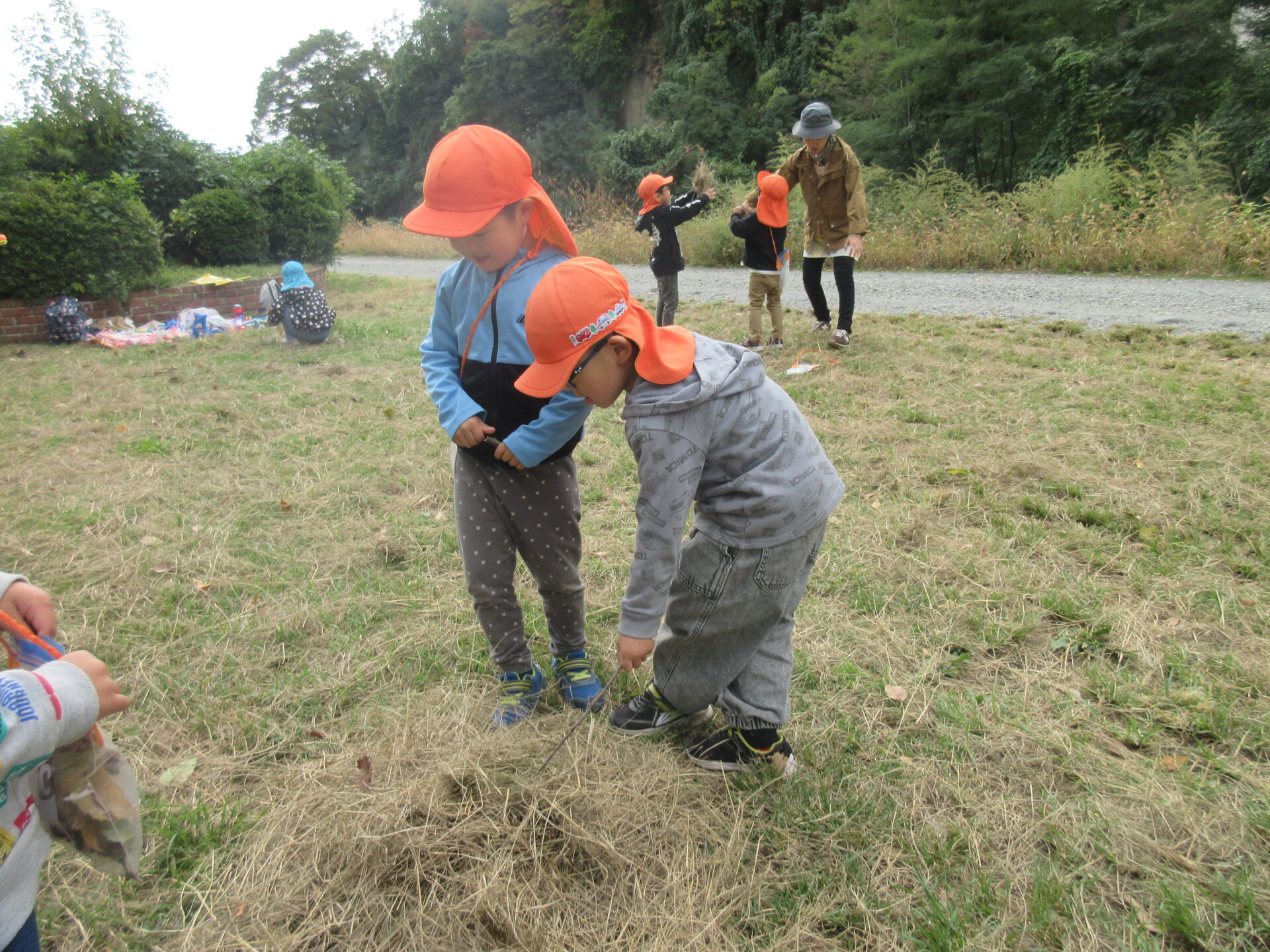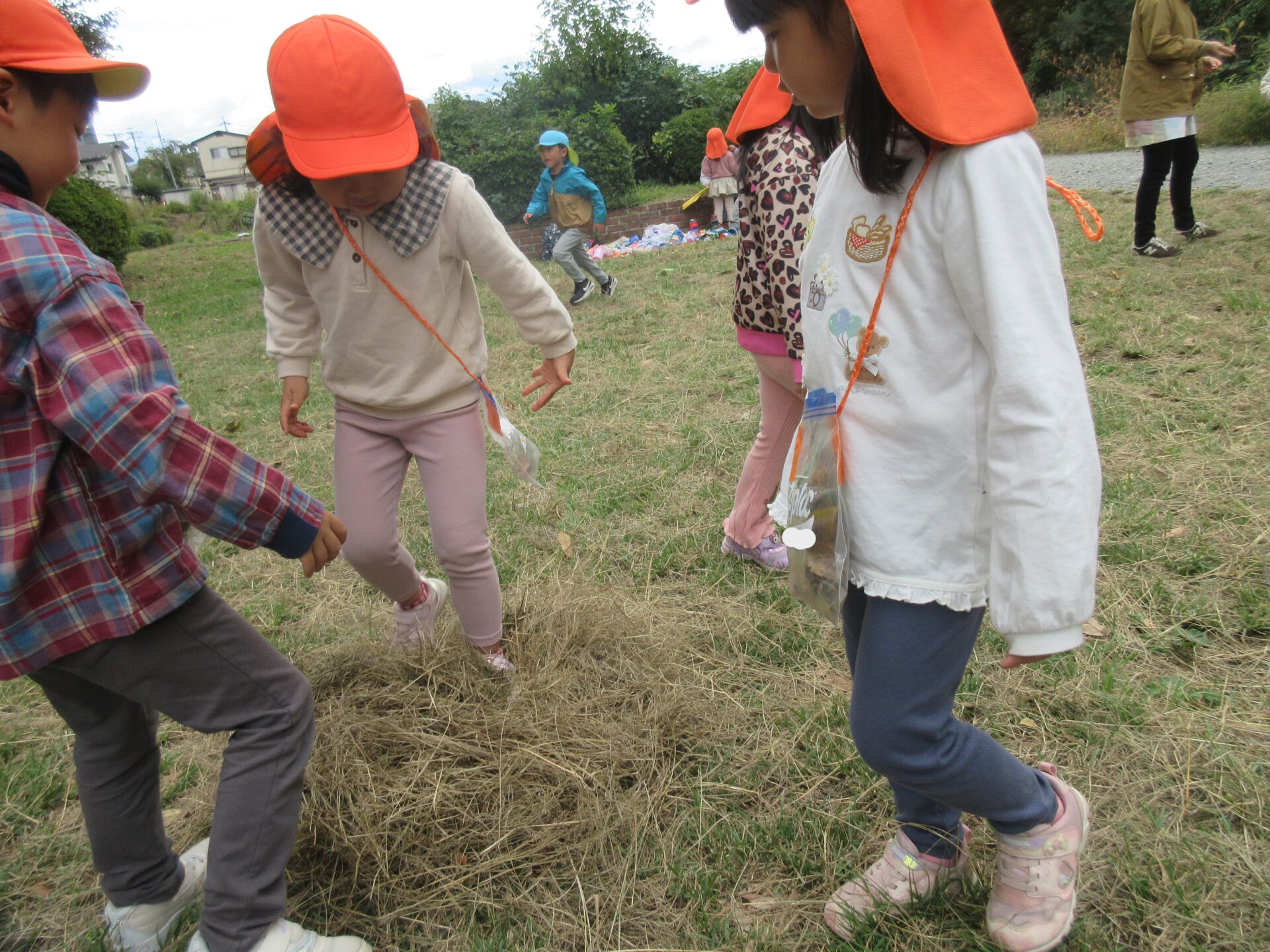 子ども達の発想はとても面白く、枯れていた雑草を集めて色々なものに見立てて遊ぶ姿もありました。