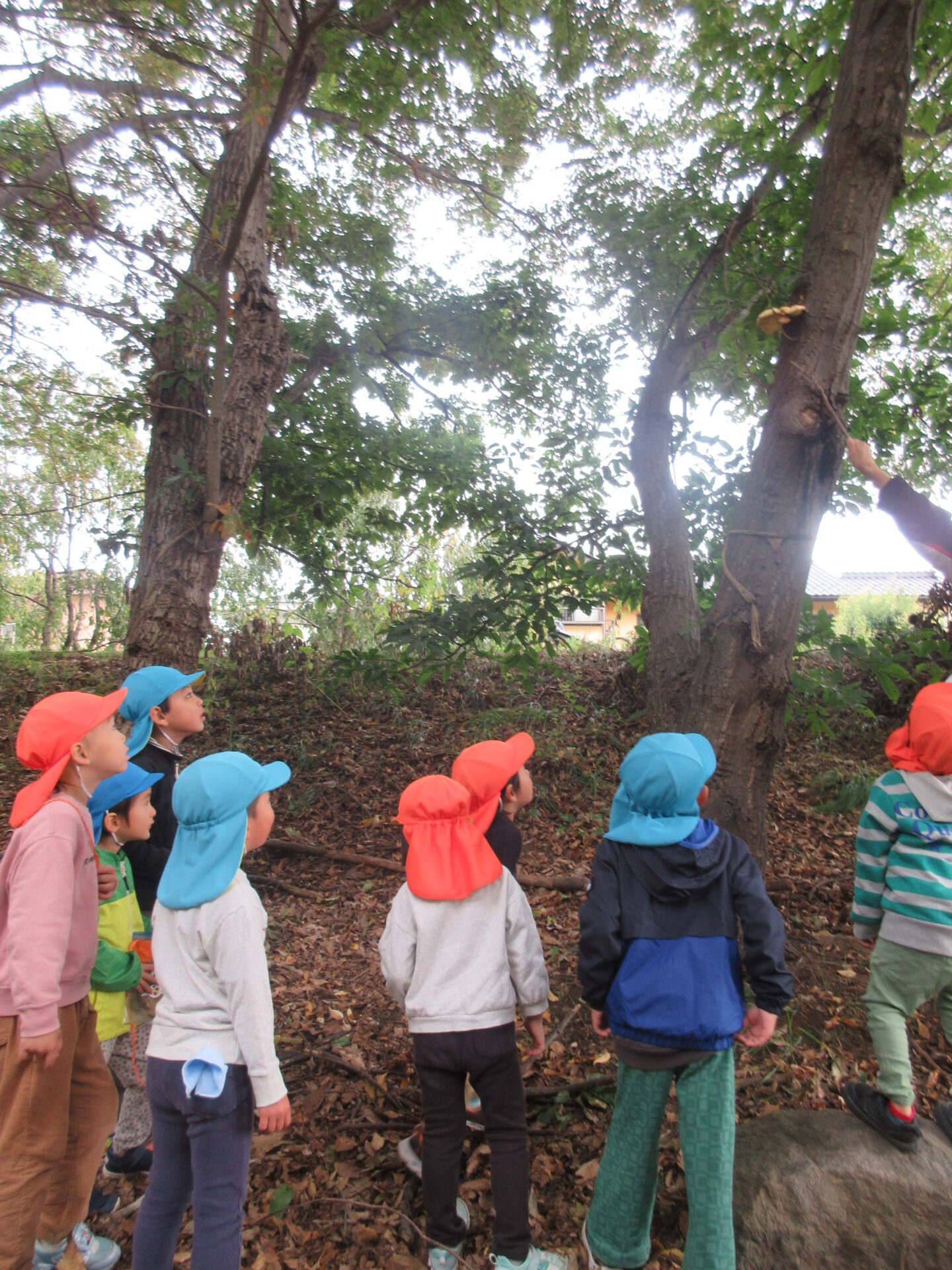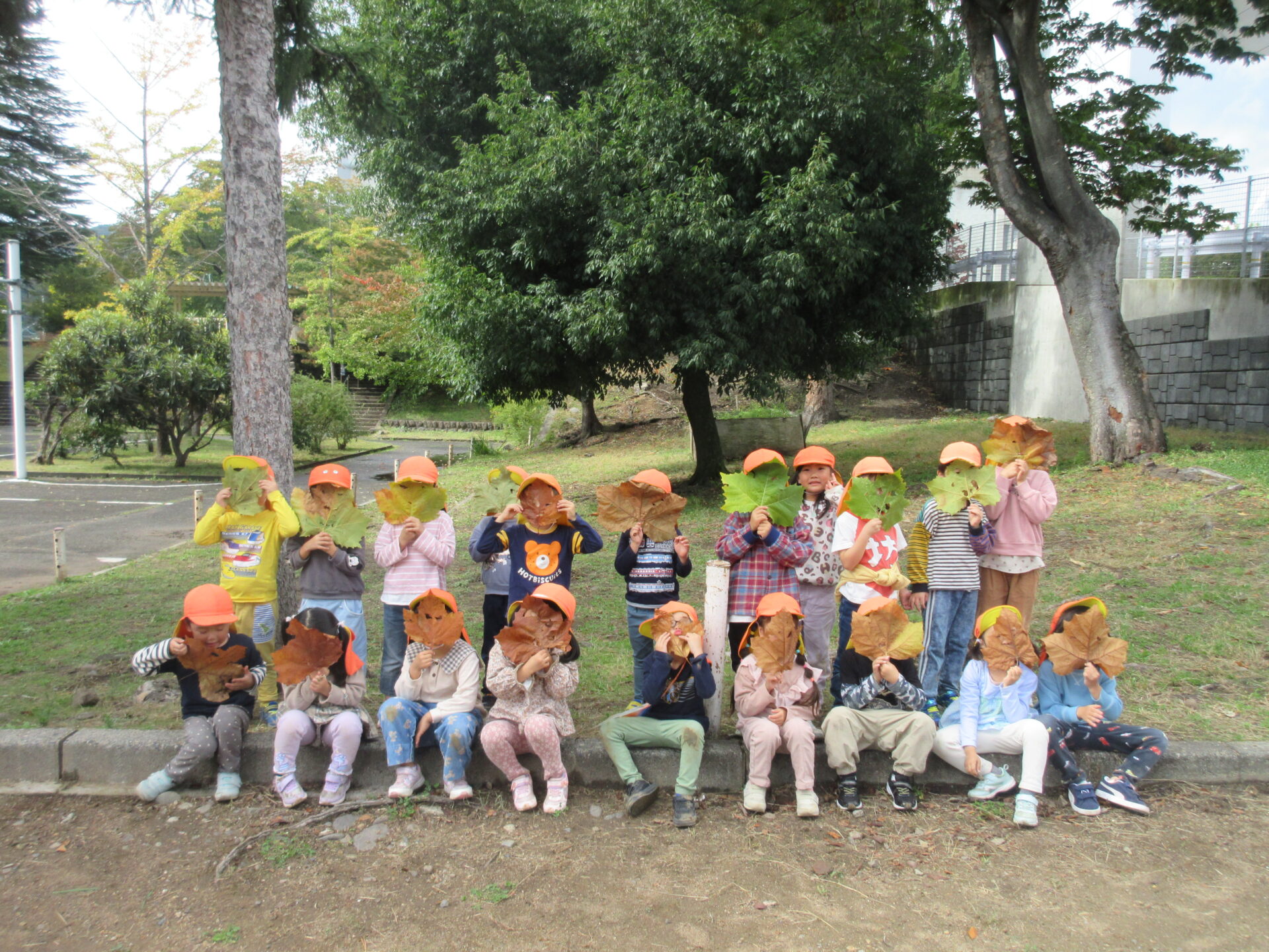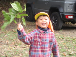 落ち葉探しをしていると枝に沢山葉っぱがついたものも見つかり、「ラッキー!こんなに沢山ある!」と全部取って喜ぶ姿もありました!