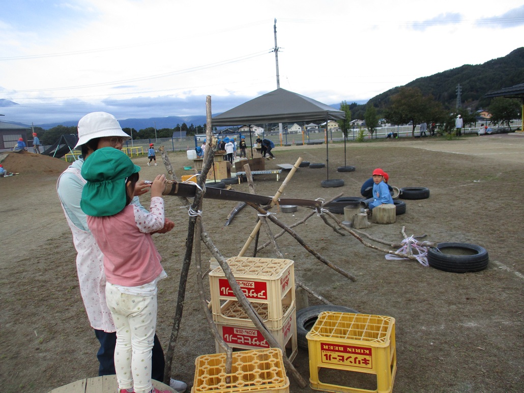 園庭には秋の遊びが広がっています。