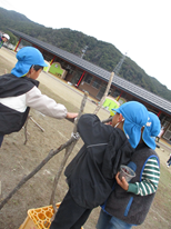 未満児さんから幼児さんまで一緒になって遊べる機会になっています。気づいたことを年下の子に教えてあげたり、小さい子が転がしやすいように工夫してくれたりと思いやりの気持ちも見ることができました。年下の子も順番を待つことの大切さなどを経験することができています。