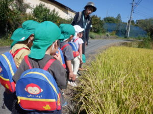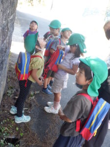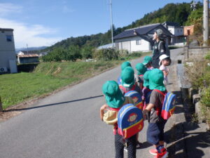 ・夏との違いを探しながらの散歩の中で、見たものだけではなく、音にも気づいた子どもたち。自然の中では五感が刺激され様々な発見があることを感じる。