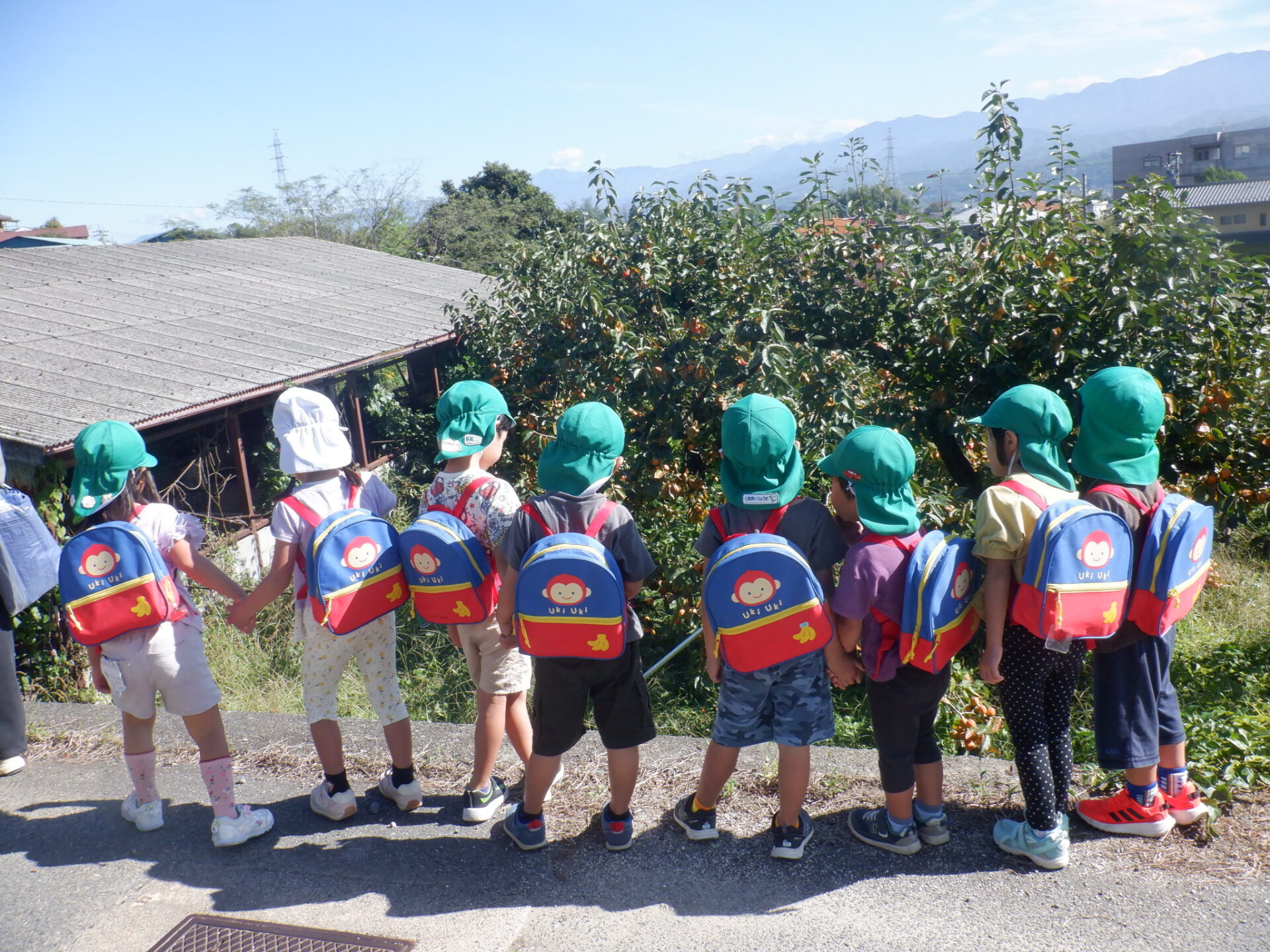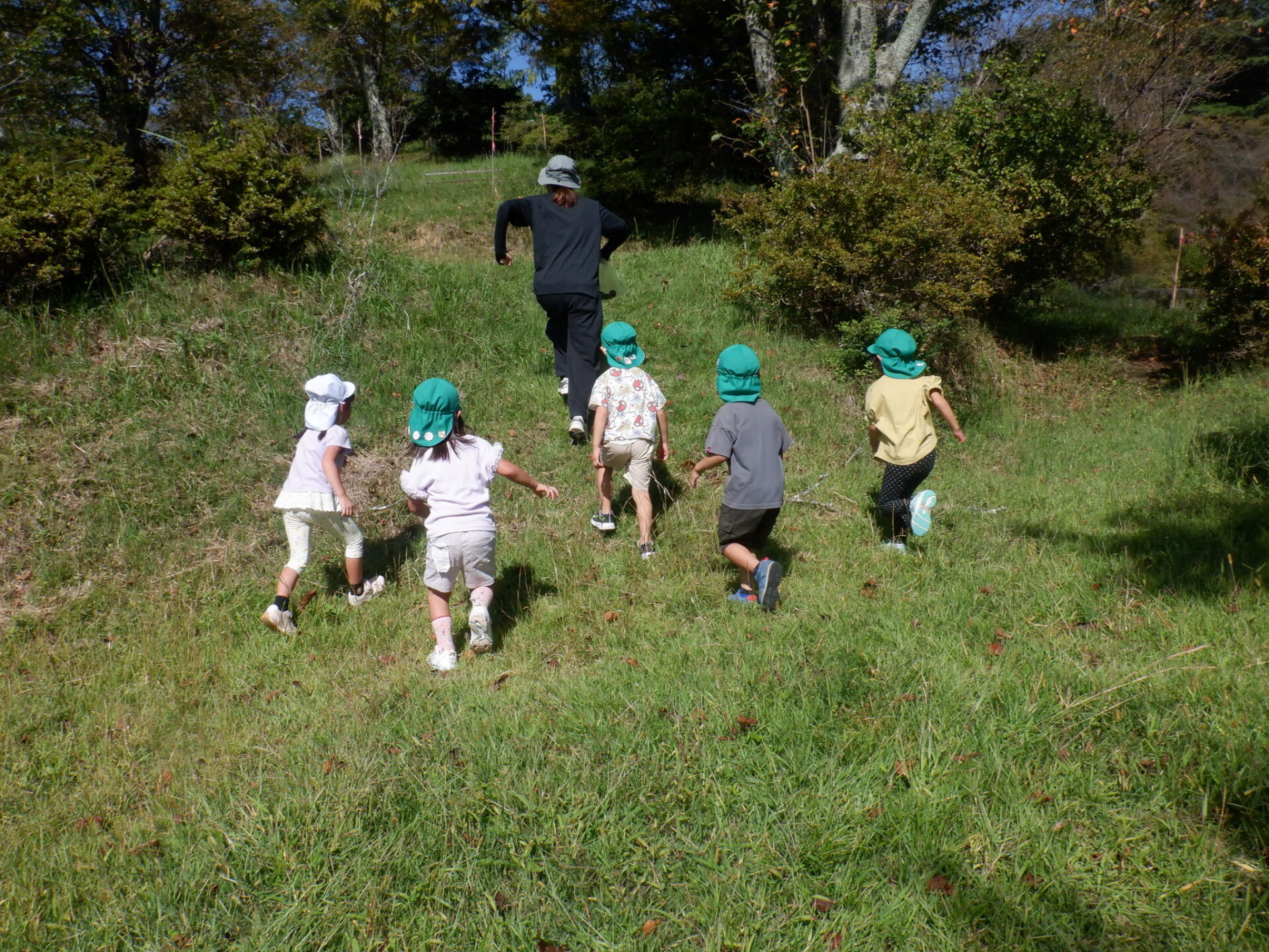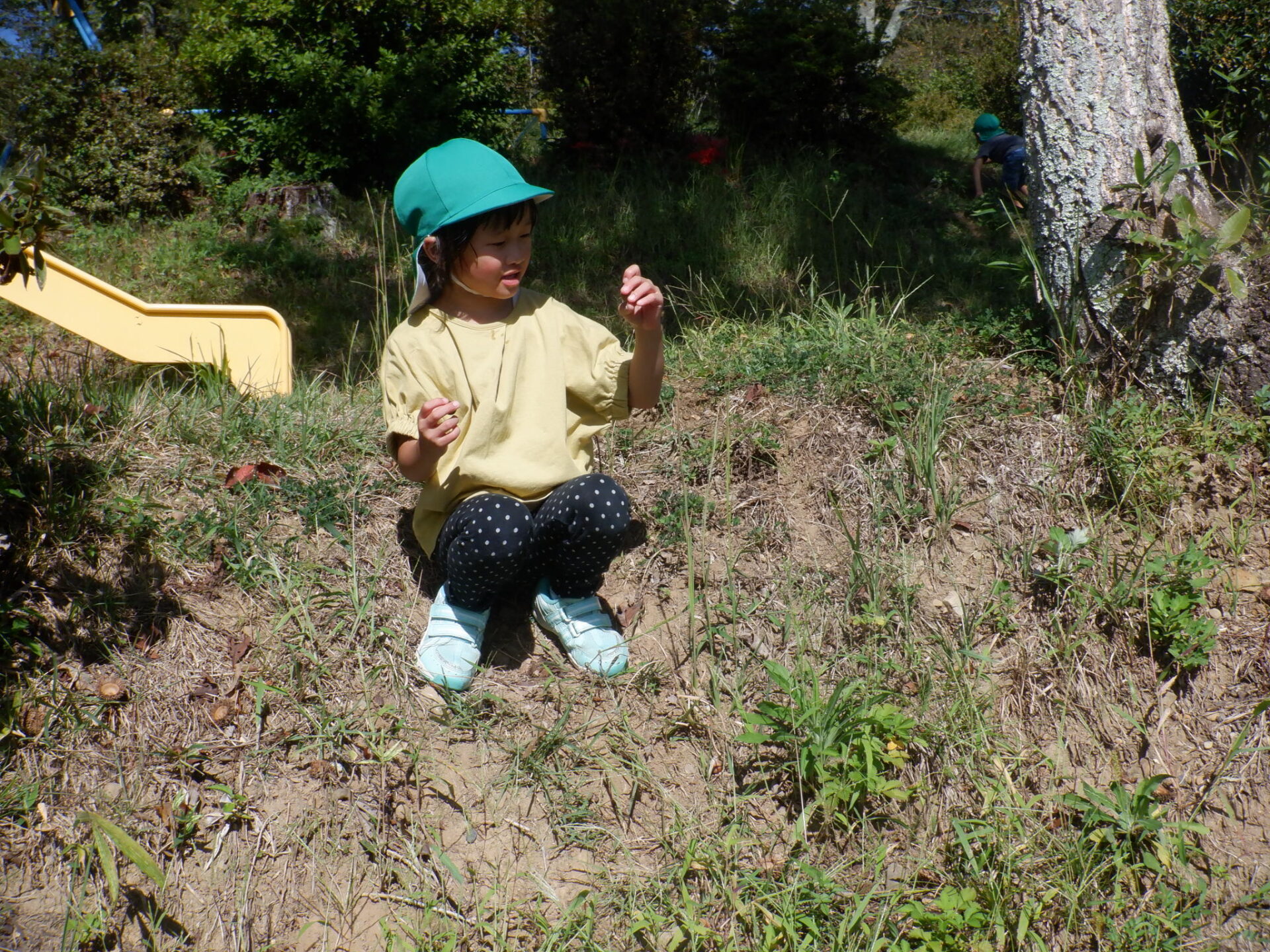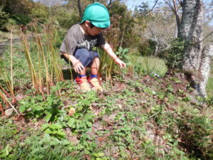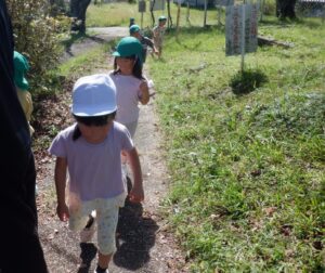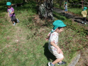 虫を見つけたりきのこ椅子に上って景色を見たり自然の中でたくさんの発見をしました。