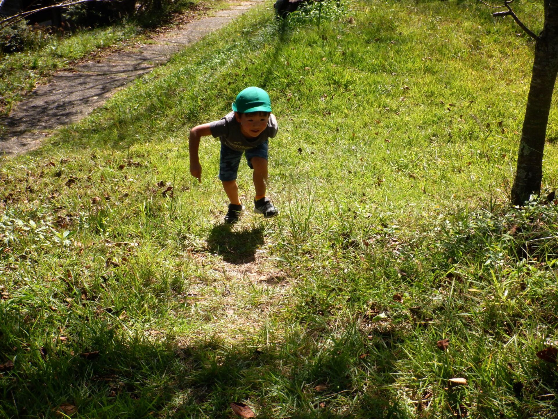 ・この道滑る!手をついて登る子や他の道を探す子がいました。