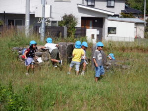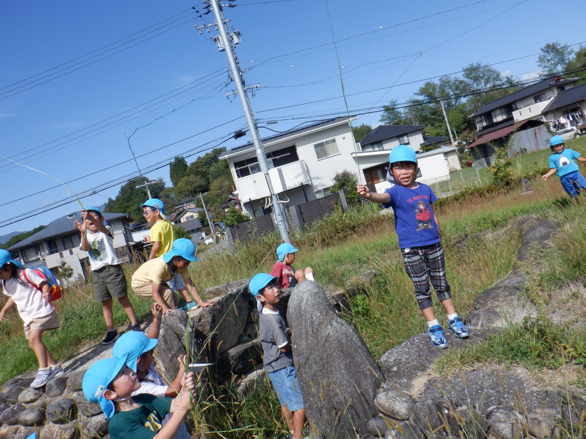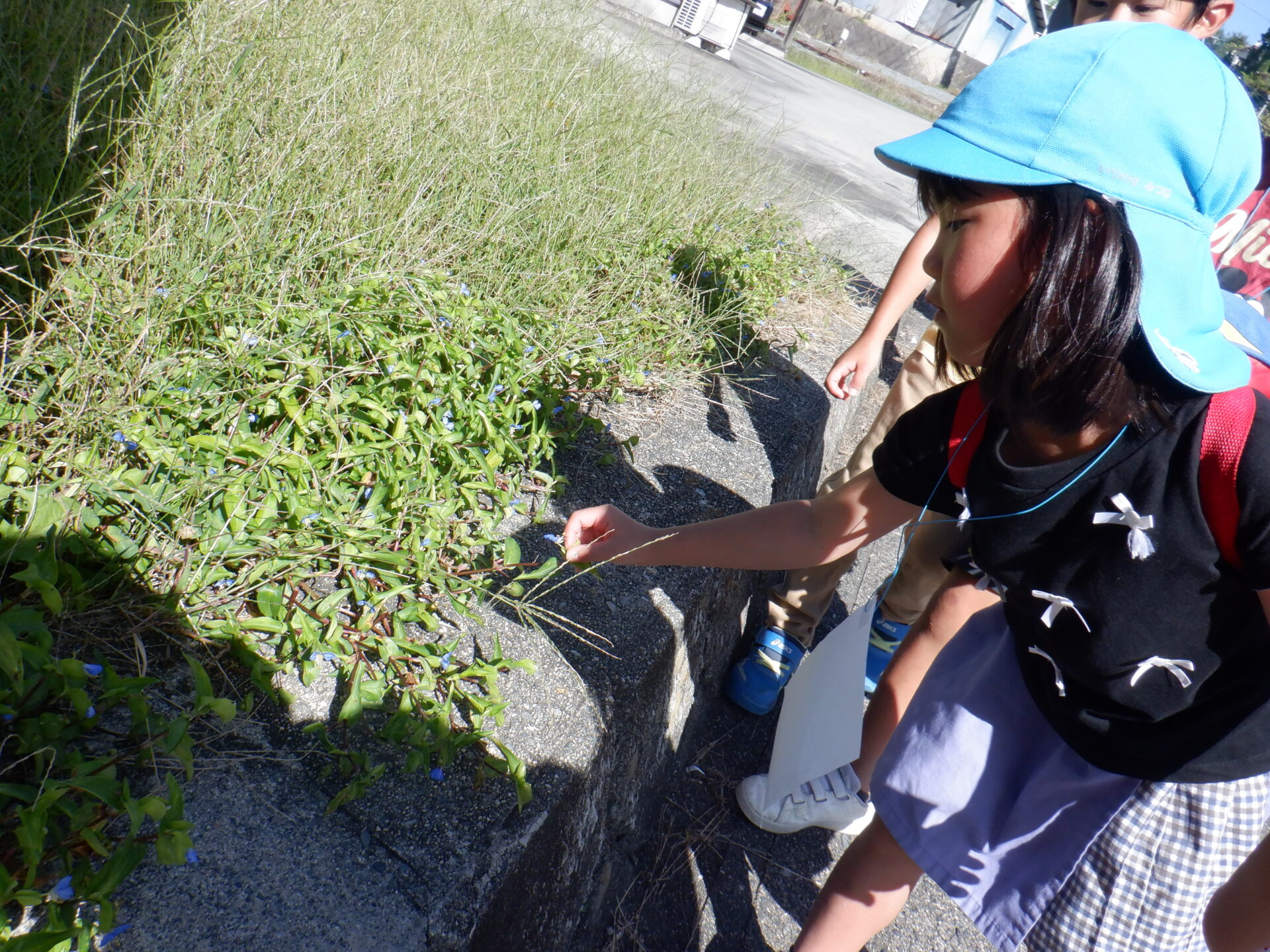 道中で花を発見!「あっお花だ!」「あっちにも咲いているよ!」トンボや雲の形にも気づく姿でした✨