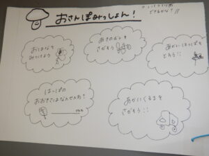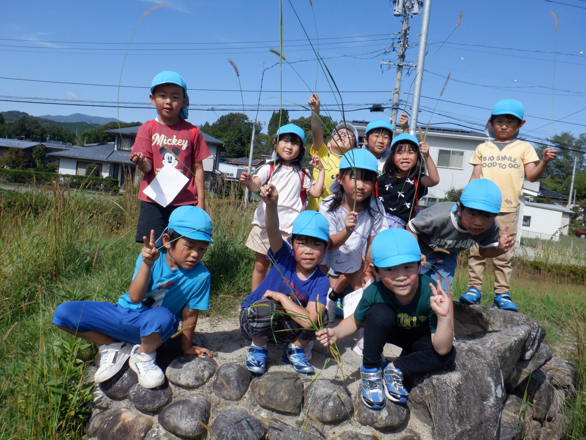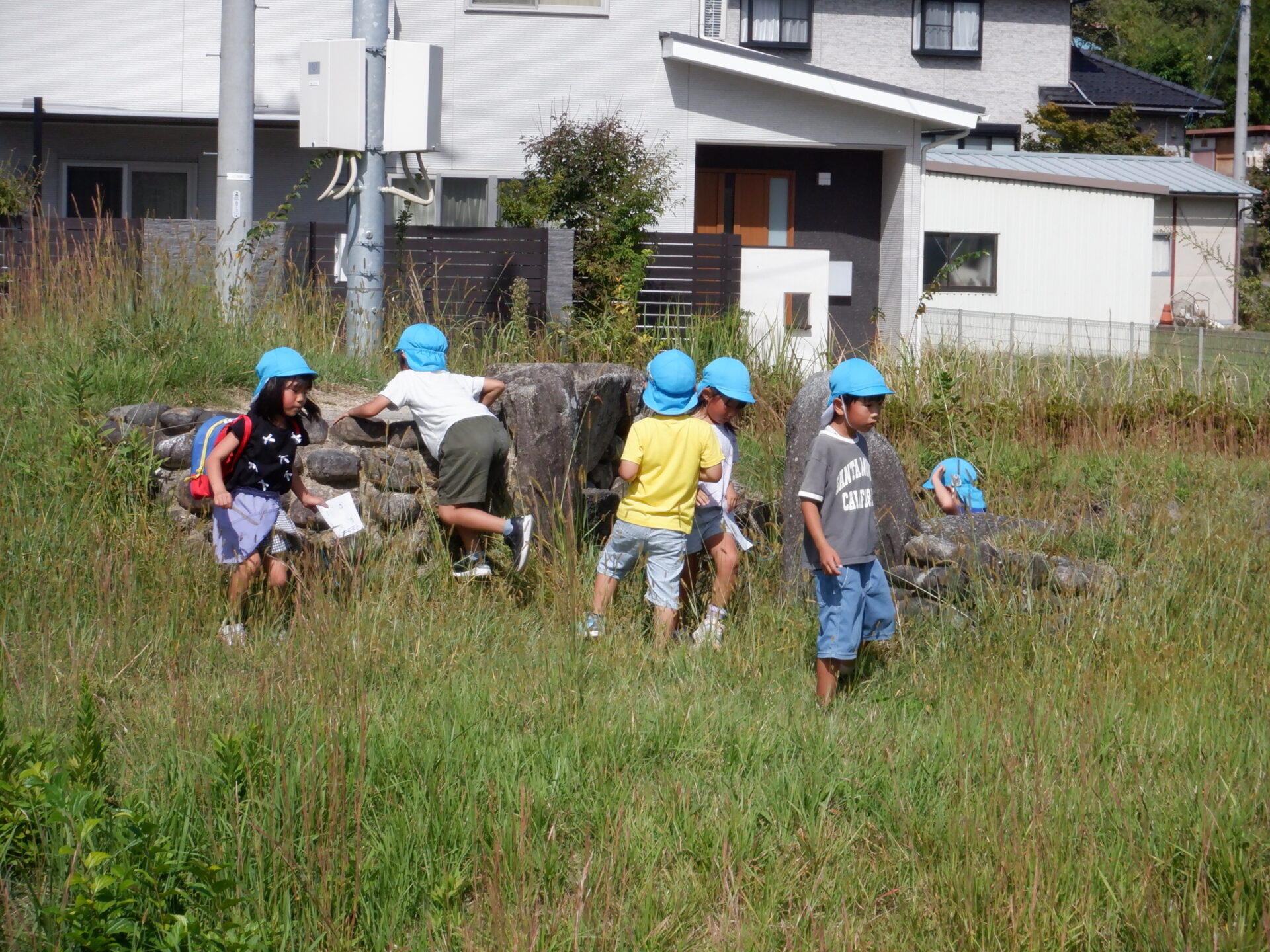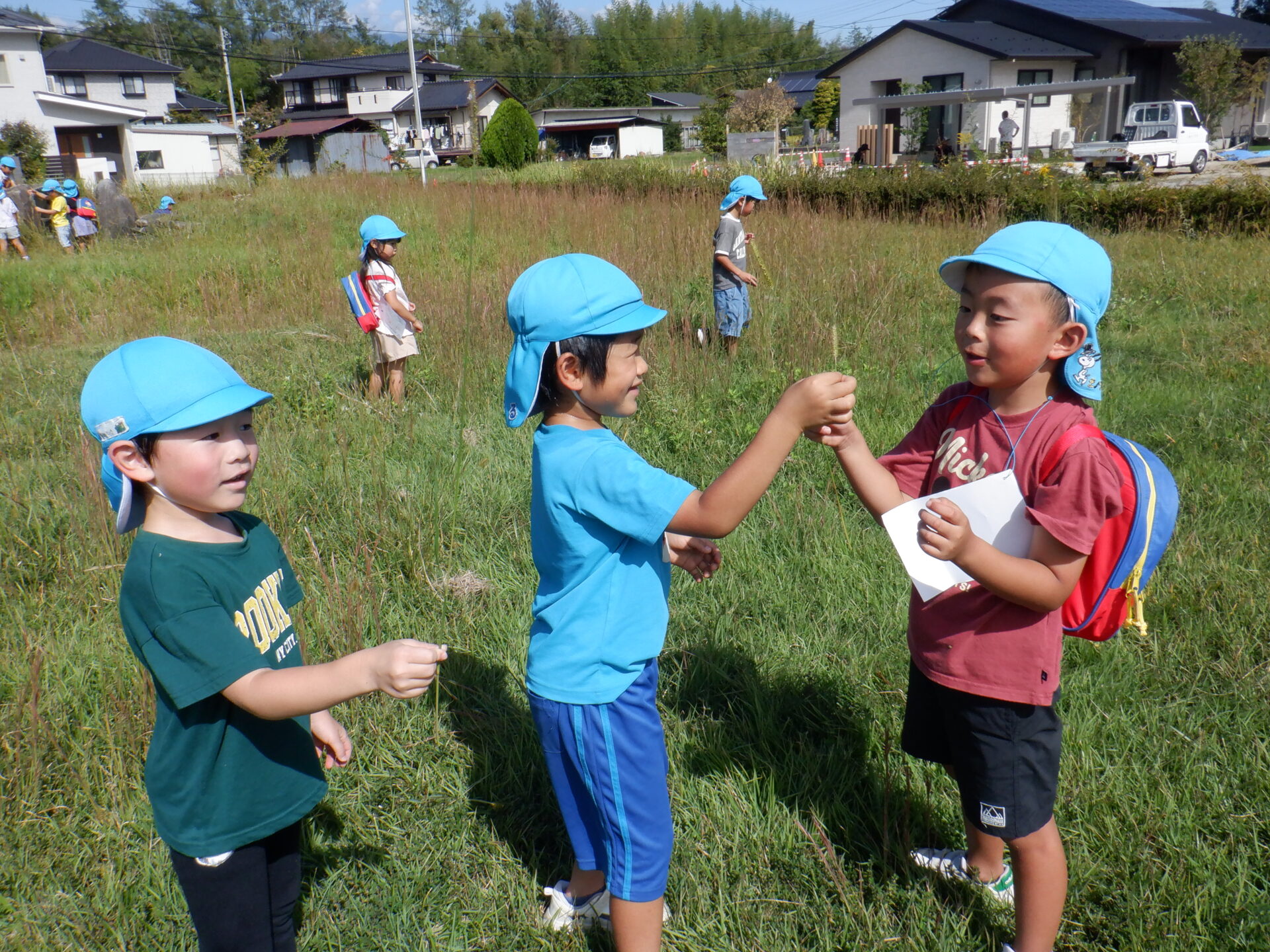 久しぶりに年長児だけでお散歩に出かけました。「トンボいるかなぁ~」「嶋公園久しぶりだなぁ!」と楽しみにしている子ども達。より関心を持てるようにミッションカードを作りました!
