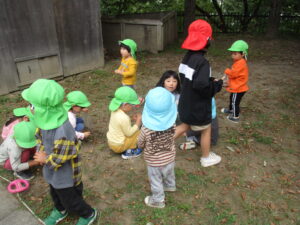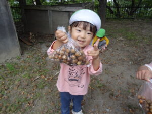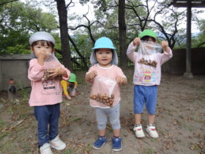 たくさん拾ってみんな大満足。ニコニコで園へ戻りました。