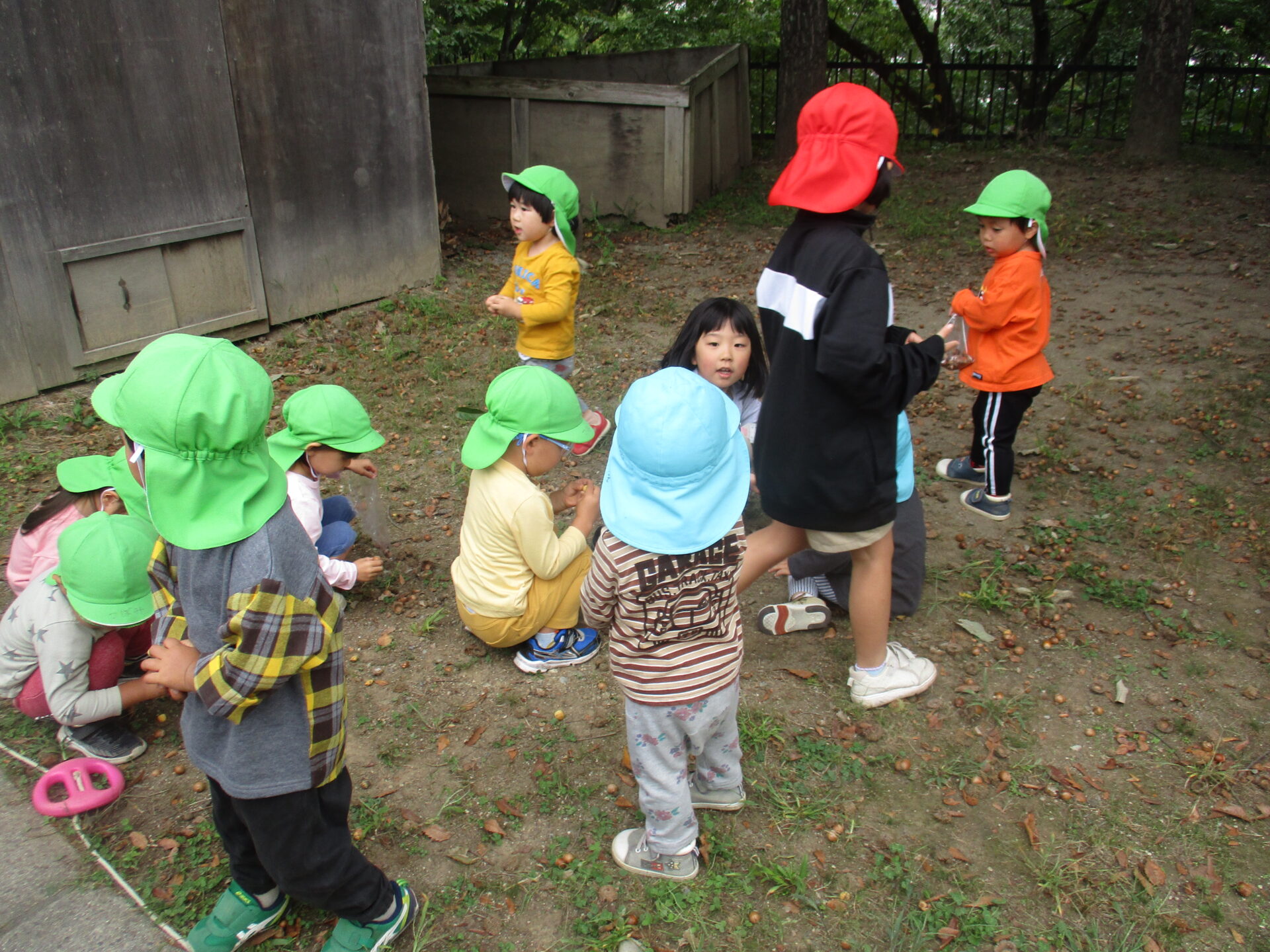 未満児組で小学校の庭へどんぐり拾いへ行ってきました。