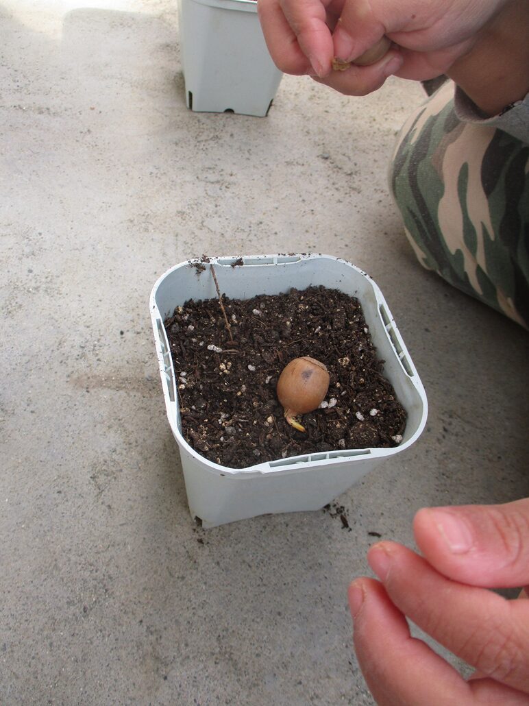 せっかく出ている芽なので土の中に入れてみようということになりました。