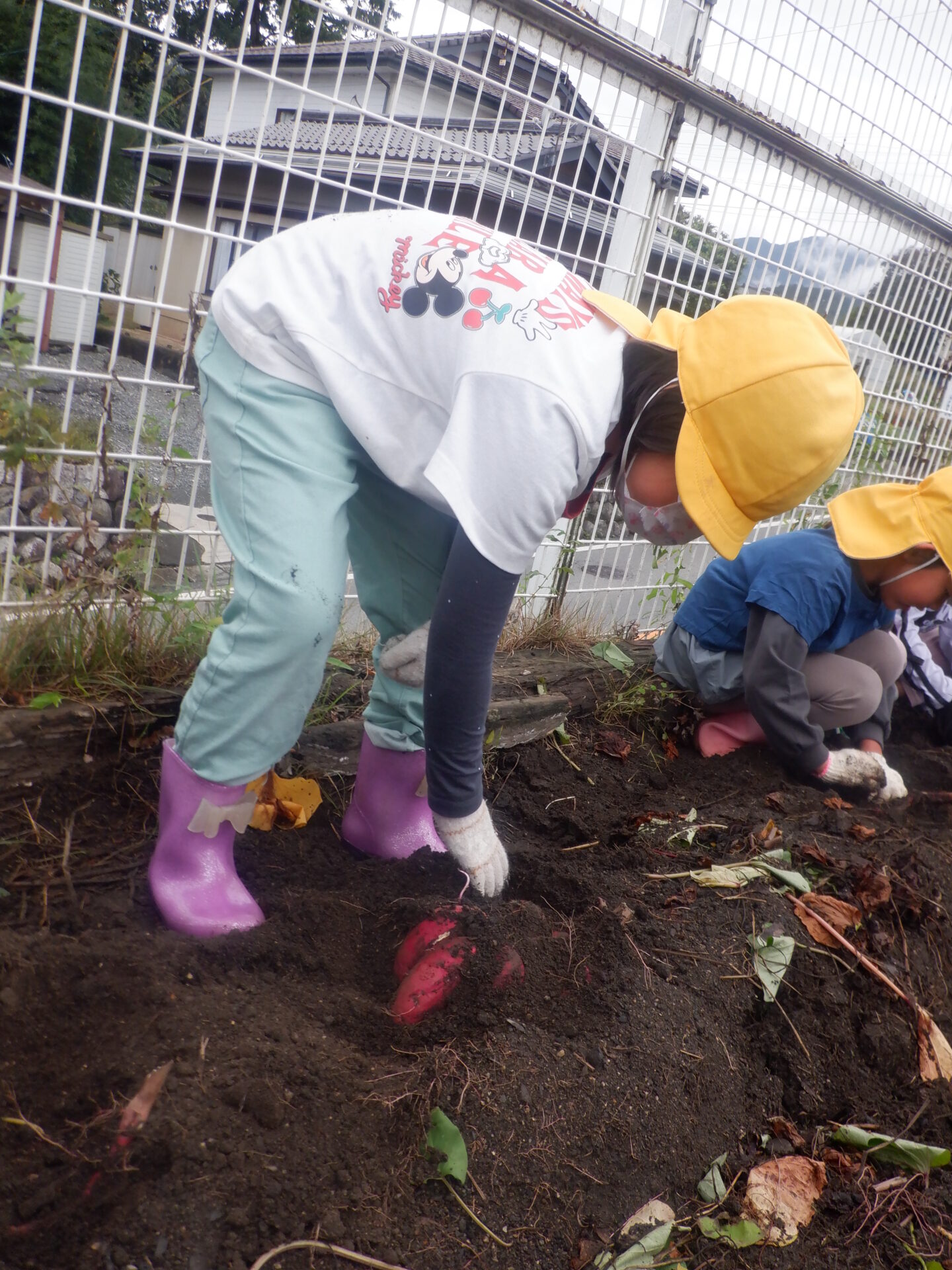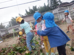 年長さんが明日の為に試し掘り・・・いいお芋が出てきそうです。