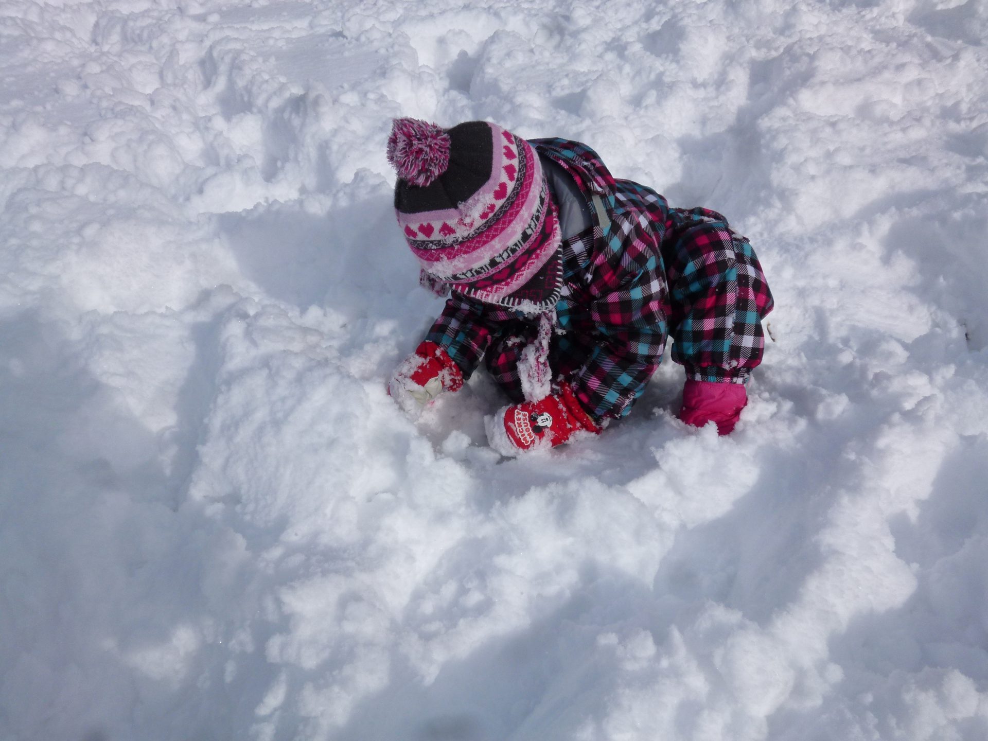 「アリさんのお家を作っているの。雪がたくさん降って寒いかな~って思って。こんなに雪が降ったからお家に入れないでしょ?ここから(穴)中に入ってお家に入ってあったまるんだよ」
