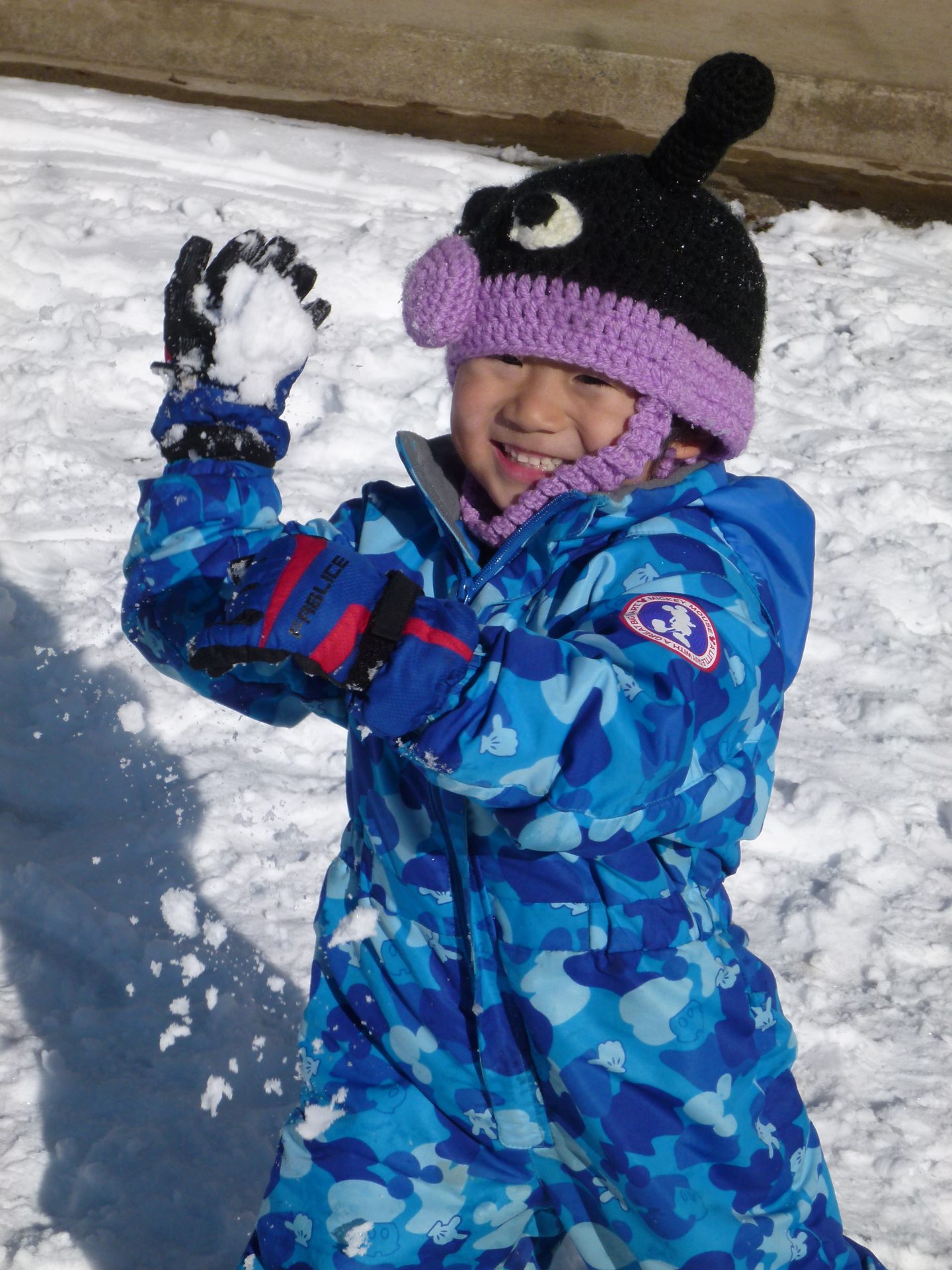 信濃町の冬はまだ始まったばかり。雪がもっと降り積もると園庭には大きな雪山ができ、子ども達は早く雪山が出きることを望んでいます。空に向かって「ゆきーいっぱい降ってー」とお願いする、かわいい姿がありました。雪を使っての遊び方はたくさんあります。友達とイメージを共有させ、友達と会話を弾ませながら遊んでいます。また、雪や氷で遊ぶ中でもいろんな不思議に思ったりや疑問に思うことがあったりします。子どもたちの声を拾い、思いに寄り添いながら雪遊びを思う存分楽しんでいきたいと思います。