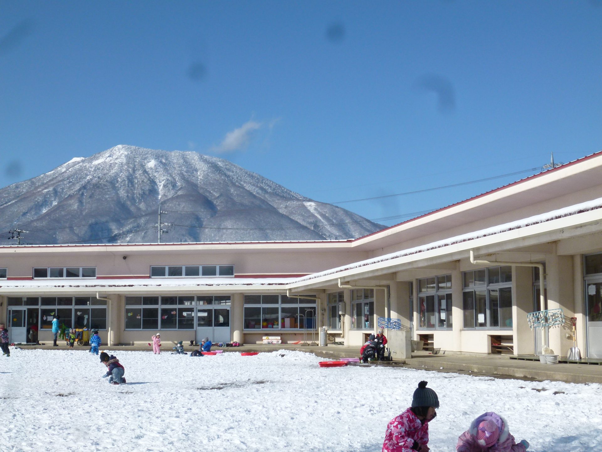 寒波が過ぎ今朝はとても冷え込みました。日中は青空が広がり、空を指差し「せんせー、雲一つもないよ!いい天気だね♪」と子どもから話がありました。久々の青空で太陽も出ていて気持ちよかったようです。黒姫山もこんなにきれいに見えました。