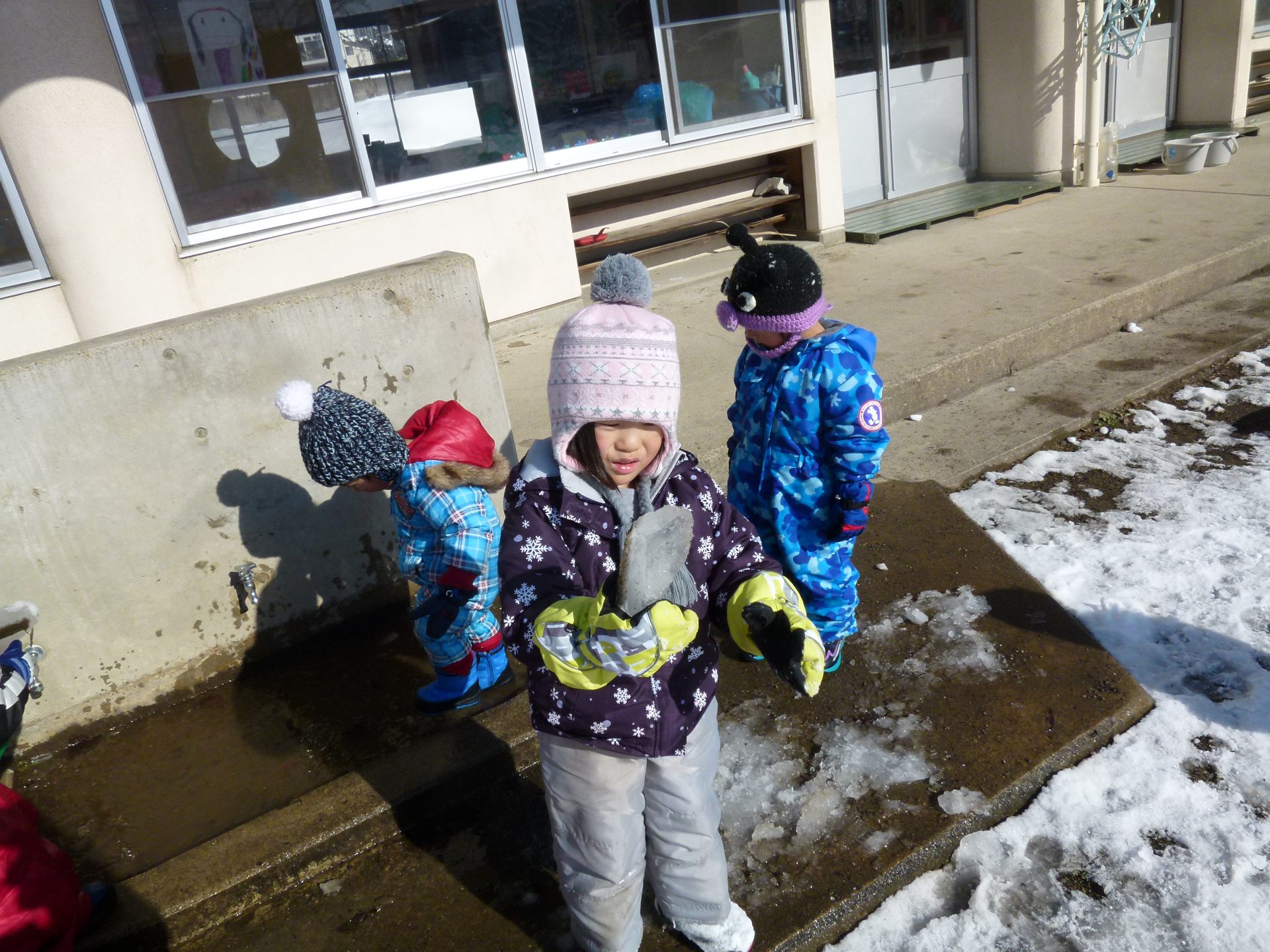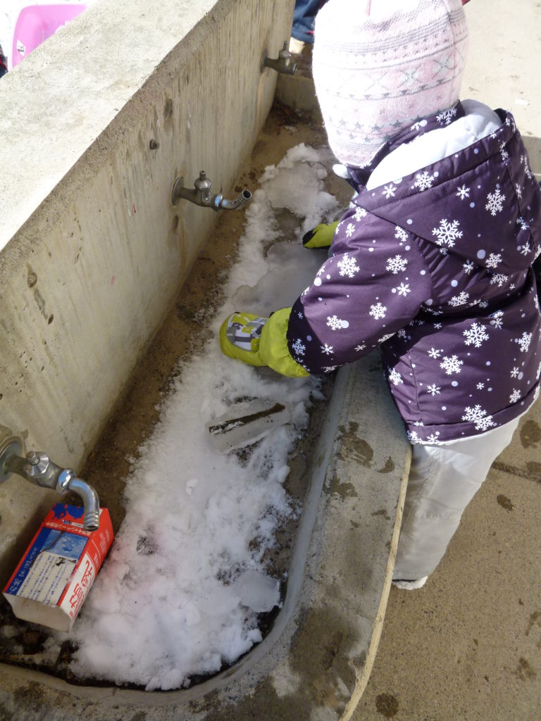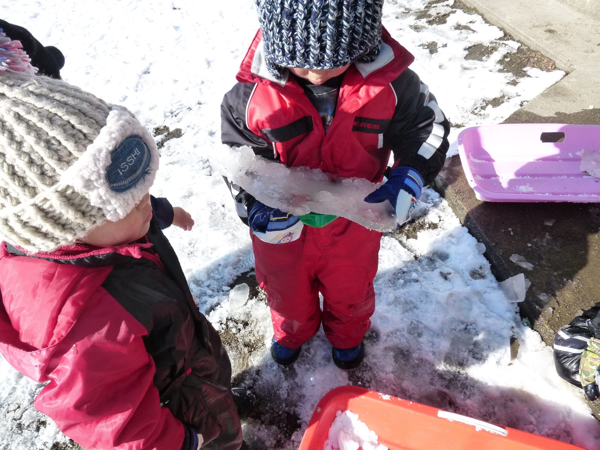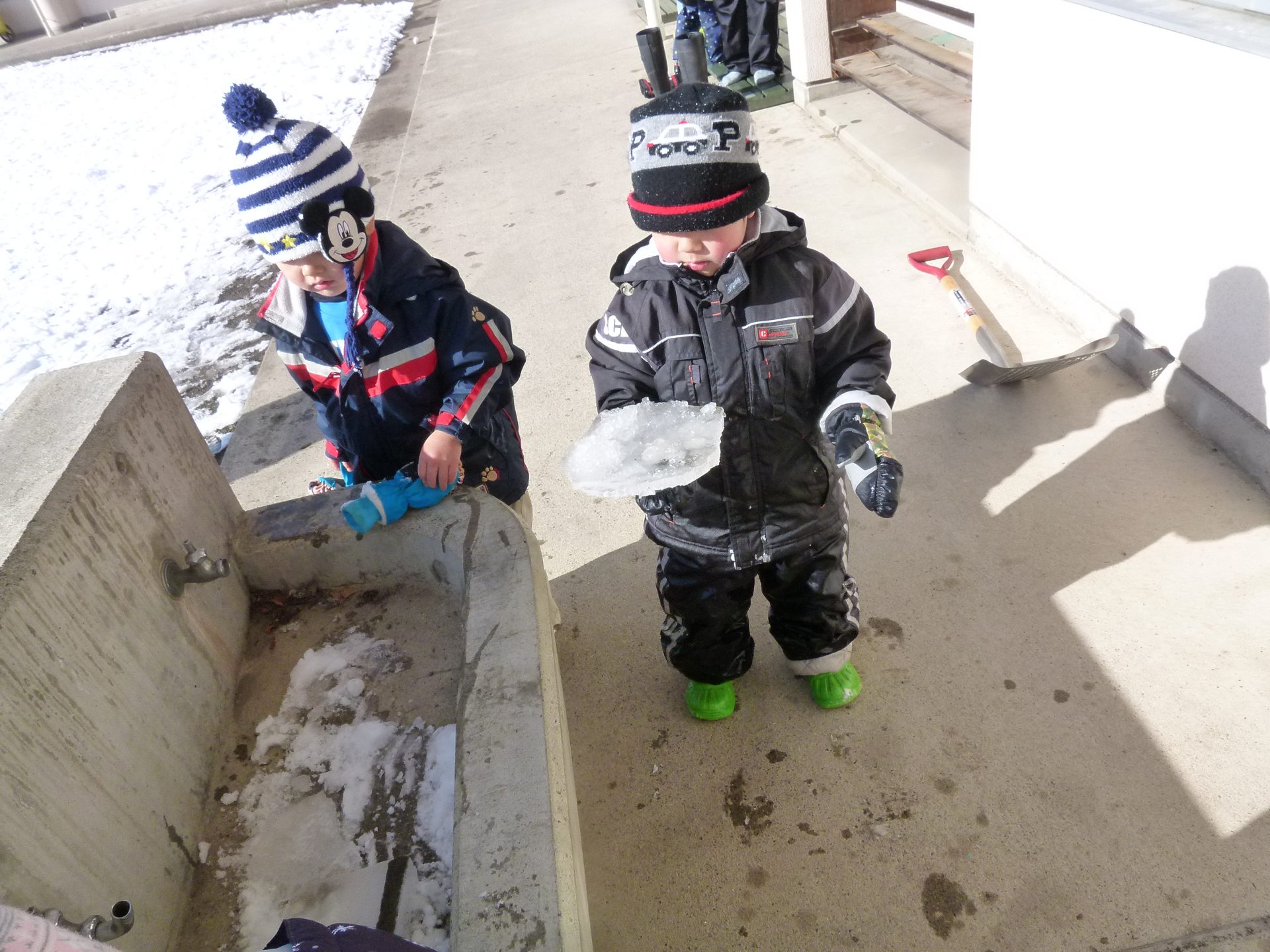 「今日は寒かったからカチコチになっちゃったんだよ~!」と友達同士考えを言い合いながら氷集めがスタートしました。