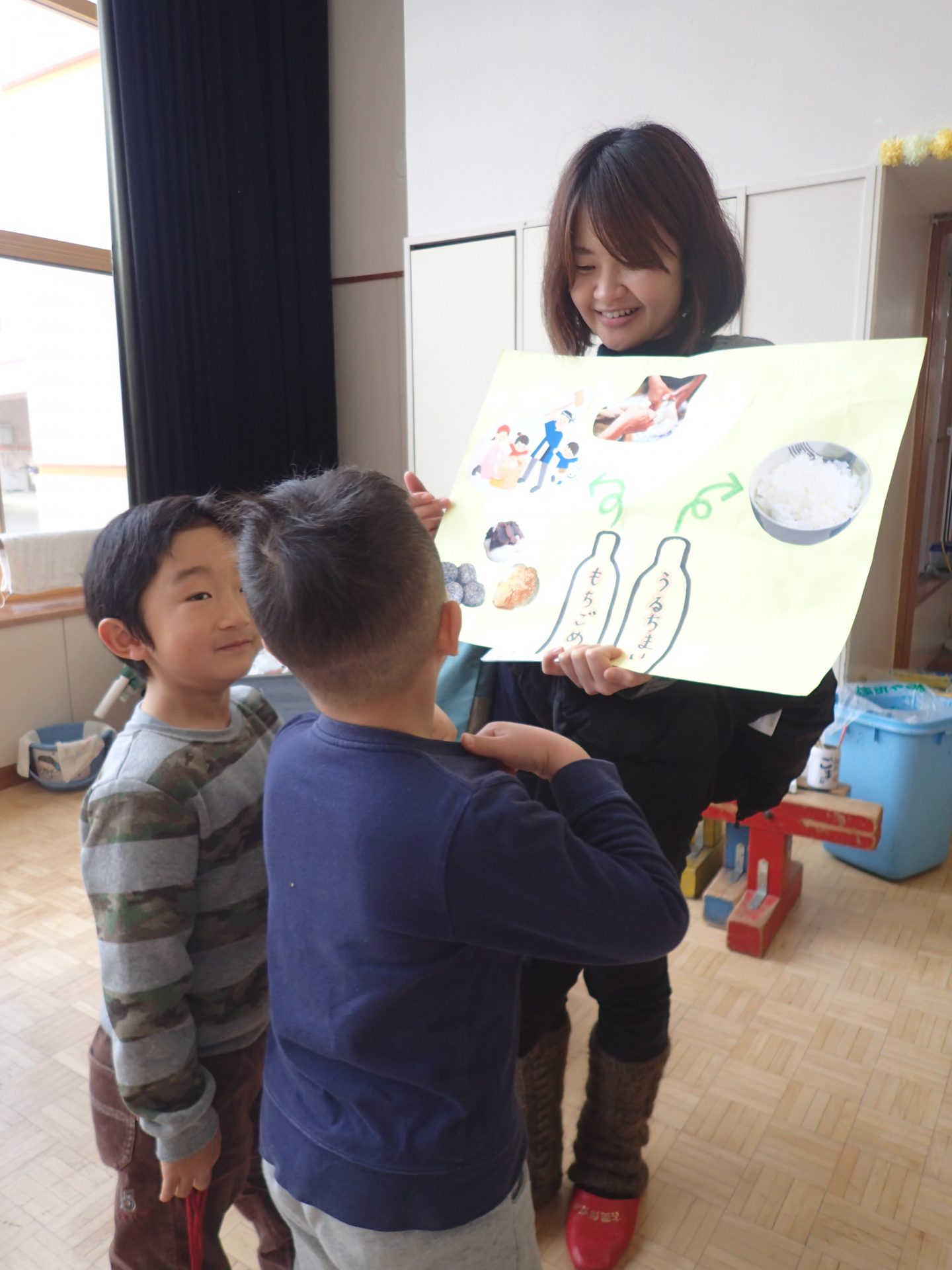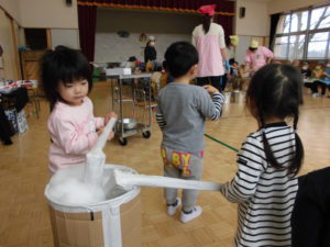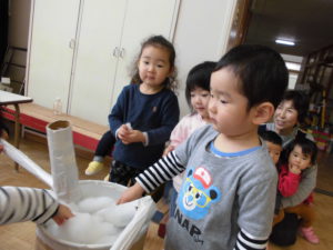 2日前の水曜日には栄養士の先生がもちつきを楽しみにしている子ども達にあるものを持ってきてくれました。