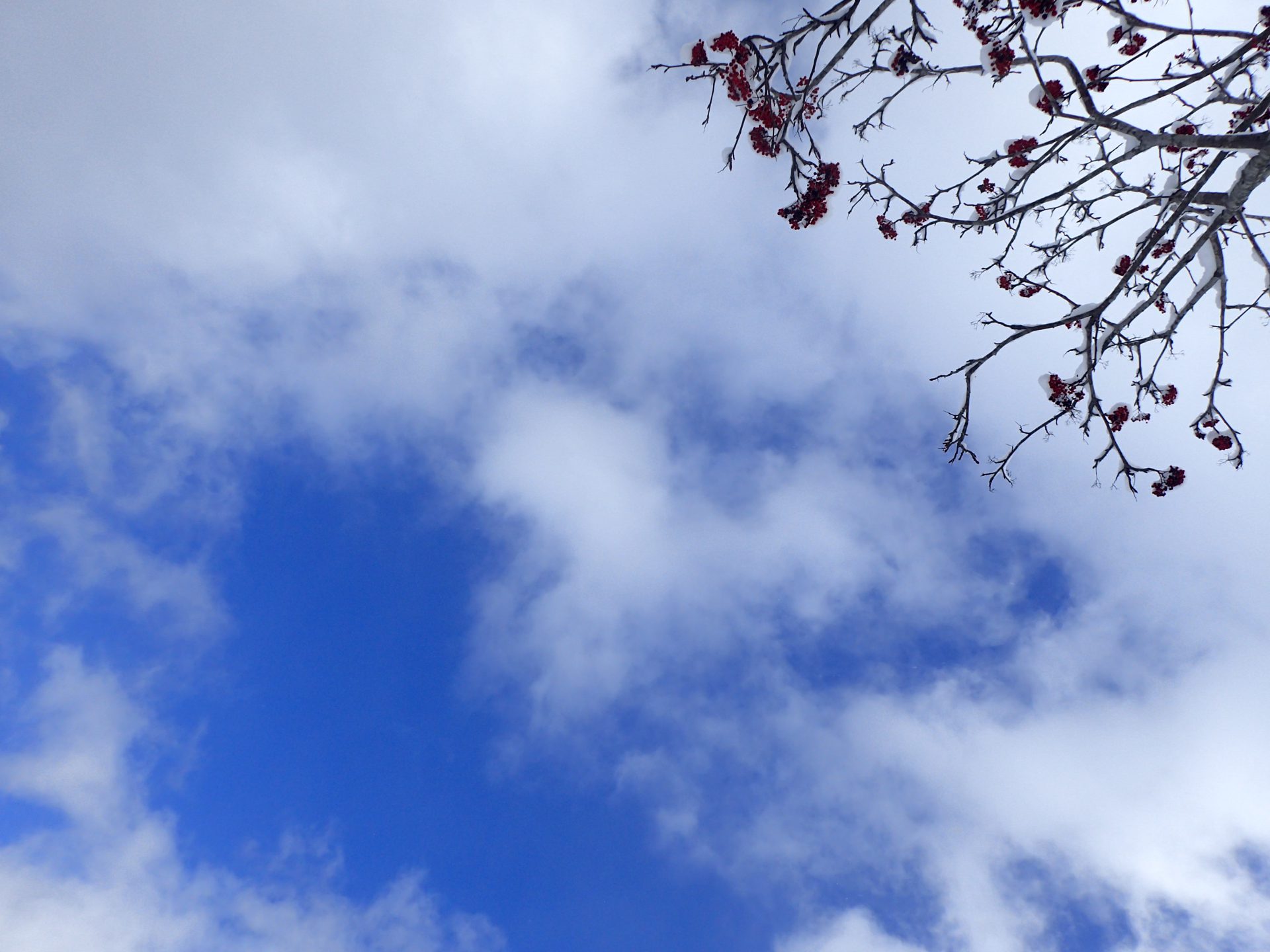 「今日はさらさらだ」パア~と雪を浴びていました。