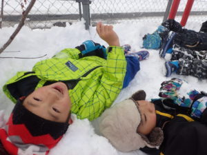 本格的な冬の訪れです。もちを食べ元気になった子ども達。